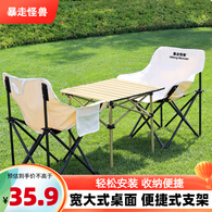暴走怪兽户外折叠桌椅子套装公园露营野餐装备超轻便携式烧烤摆摊折叠桌子 暖黄色方桌【升级加固款】
