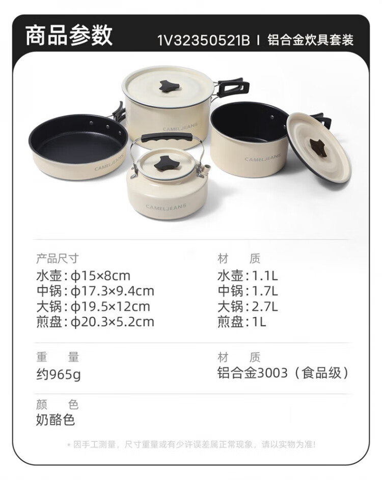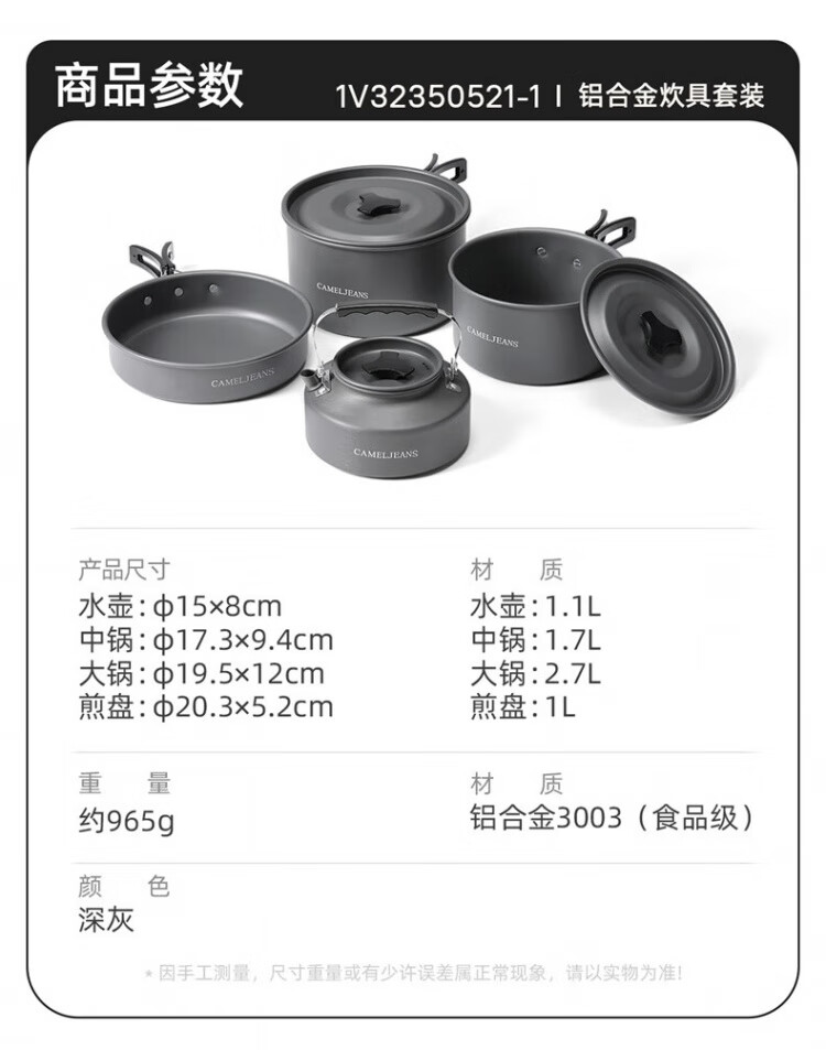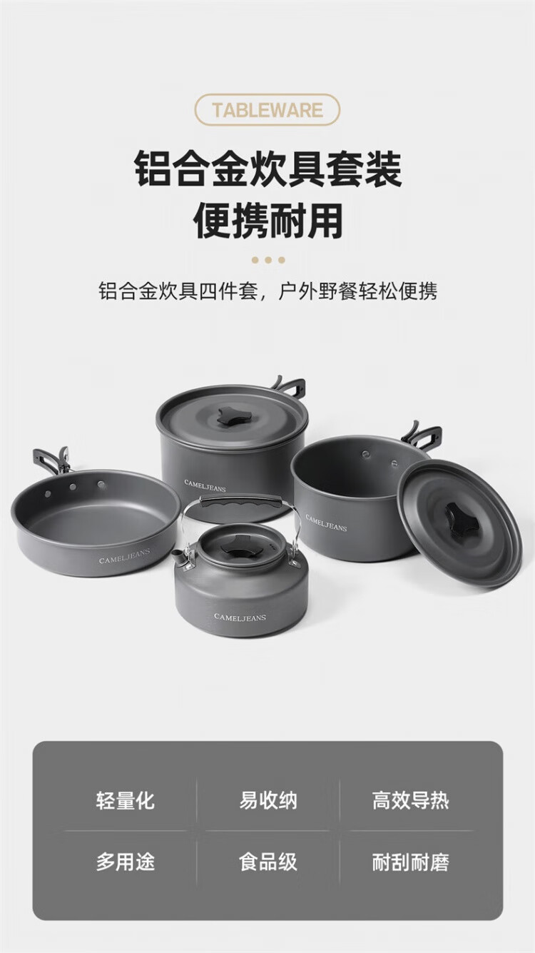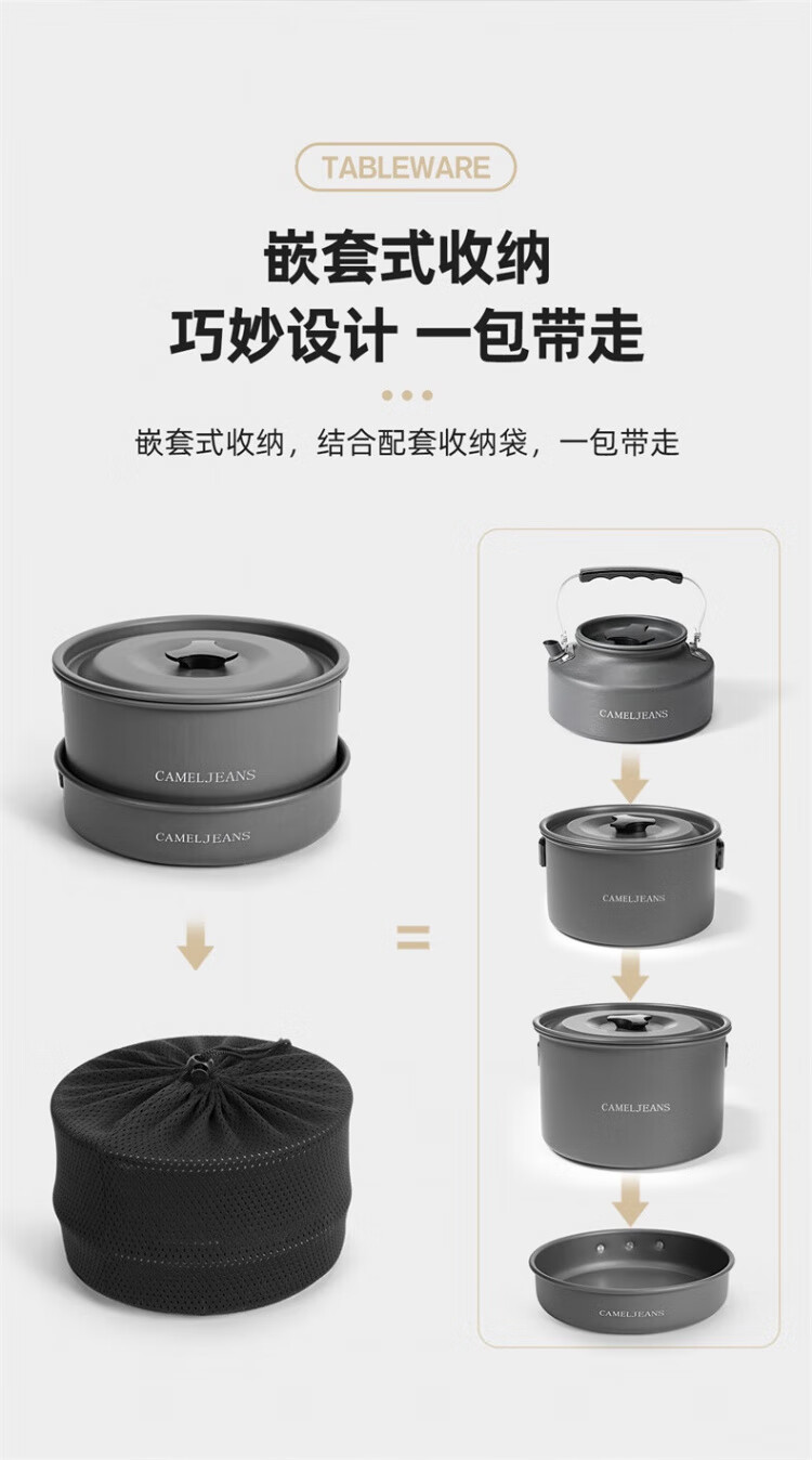 CAMELJEANS 户外锅具便携套锅露营炊具装备卡式炉烧野营野炊煮锅厨具 1V32350521-1,深灰