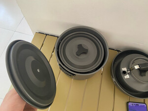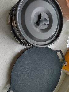颜值可以,这三样物品能全部套进大锅里。炒菜很小,炒菜肯定是费劲了。水壶很小,适合用来泡茶。快递受过挤压,大锅有点变形,盖子合不上去,我自己掰回来的,