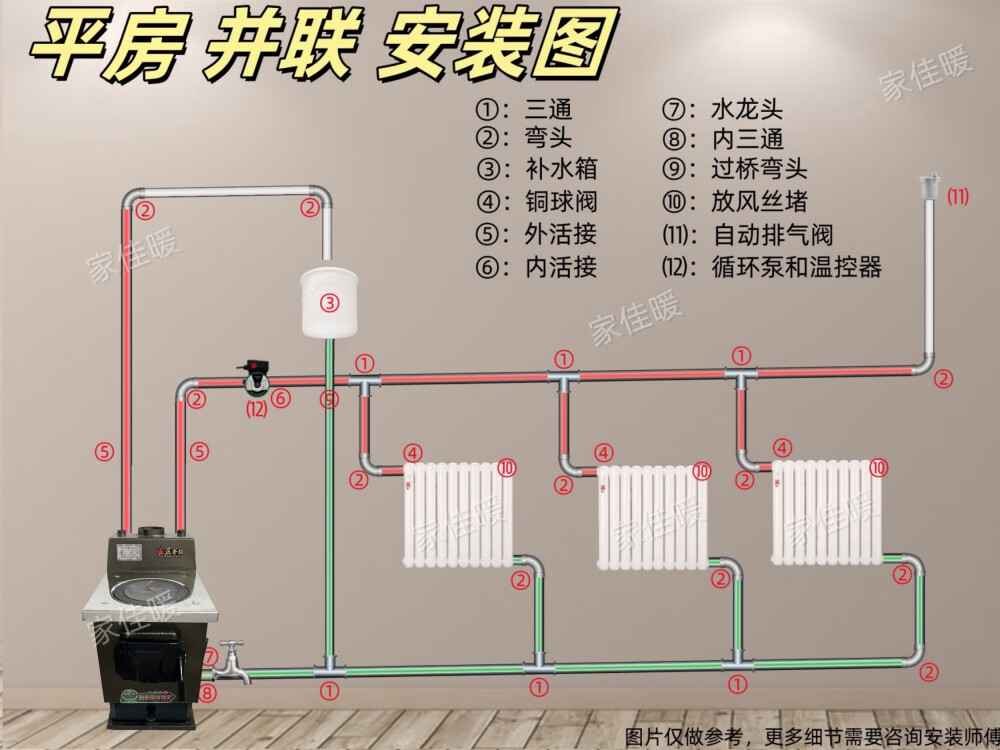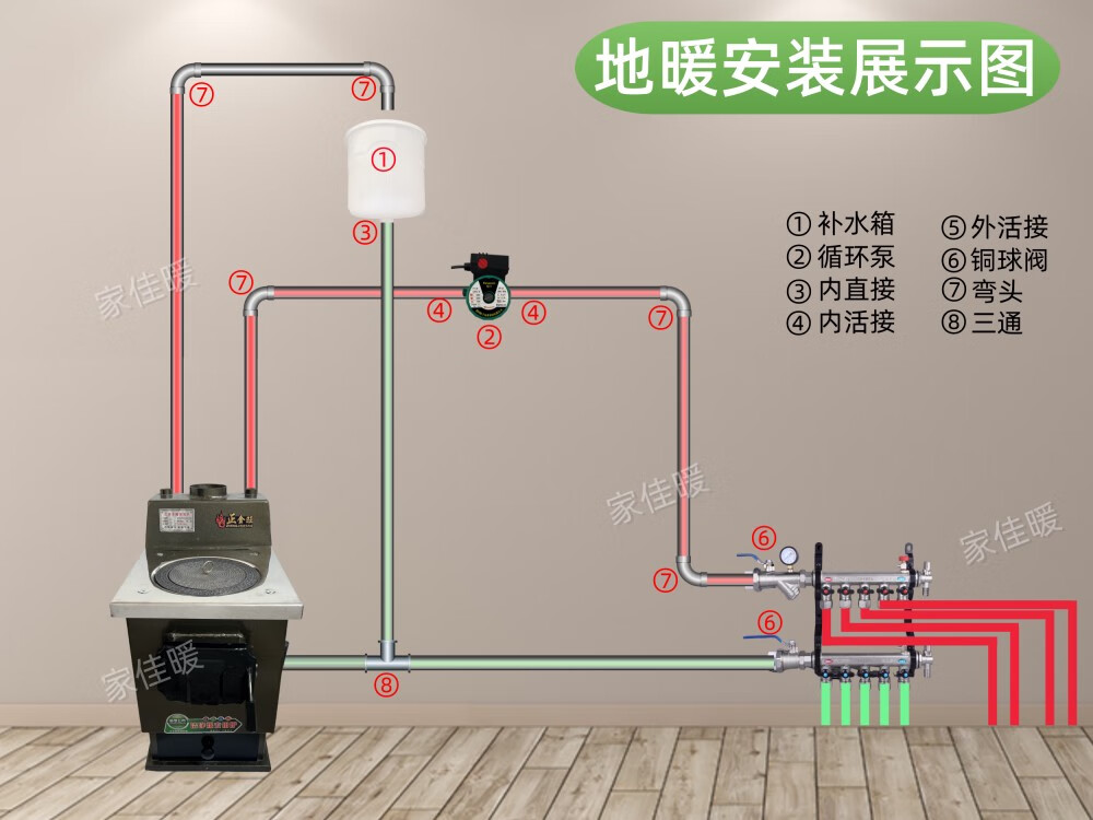家用采暖炉农村新型水循环取暖炉柴煤两用地暖锅炉烧煤燃煤暖气炉 通天通炕80#方口