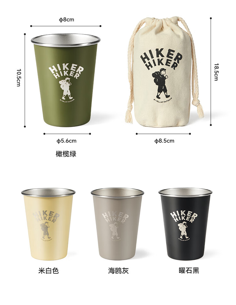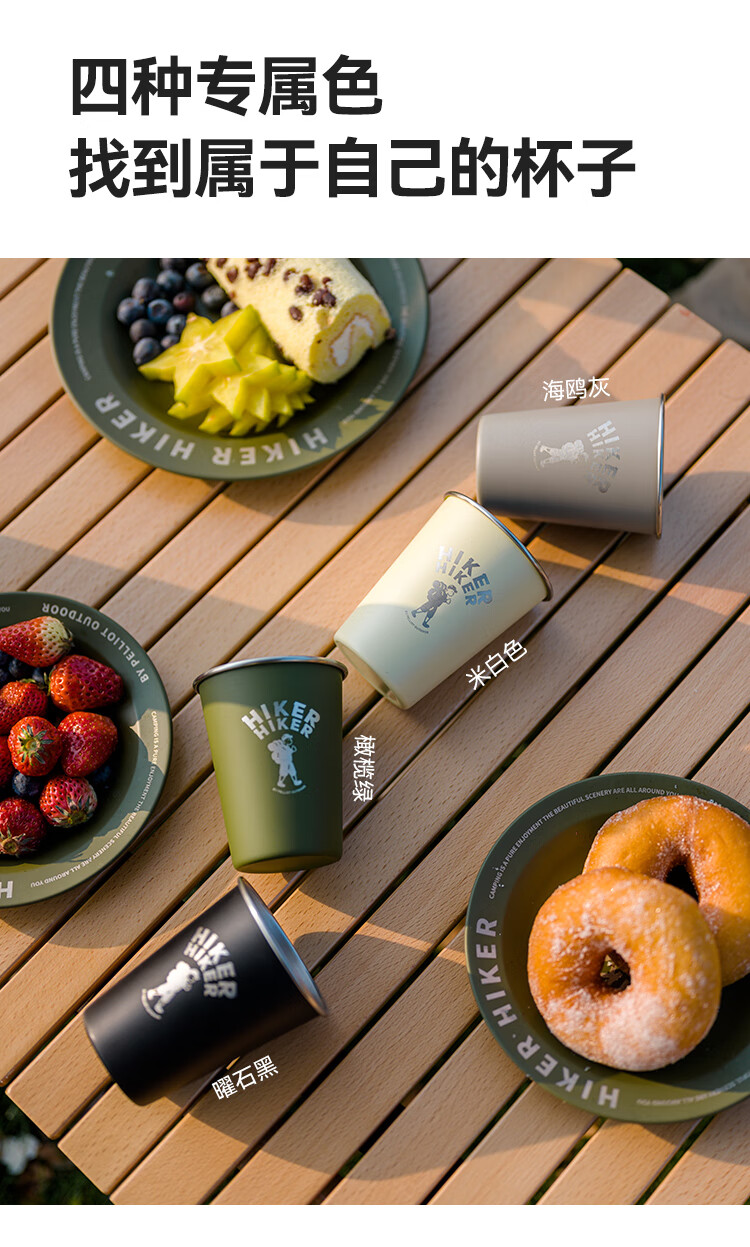 伯希和(Pelliot)HIKER系列户外水杯不锈钢茶杯露营野餐便携咖啡杯子 4色组合装-350ml/只