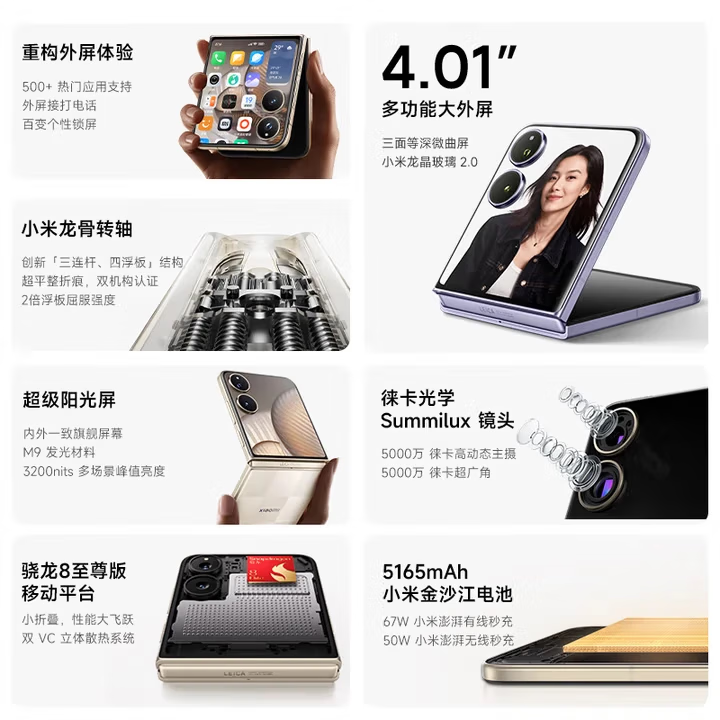 小米(MI)MIX Flip/ Flip2 骁龙 8 至尊版 徕卡影像小米手机小折叠屏 格子金【 MIX Flip 2】 12G+256G 官方标配