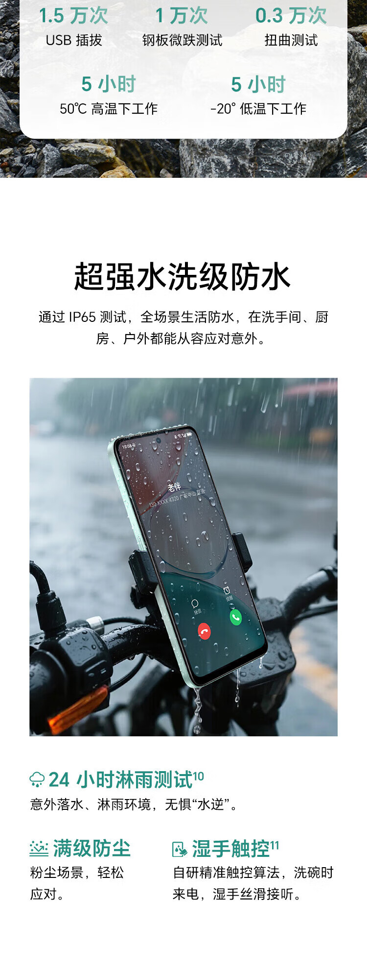 外包装采用贴防拆标签,彩盒内标配: ①手机x1、②电池(内置)x1、③快速指南(含电子三包凭证)x1、④SuperChare充电器x1、⑤TypeC数据线x1、⑥取卡针x1、⑦TPU保护壳x1、⑧TP