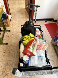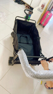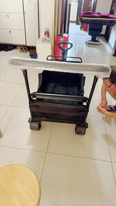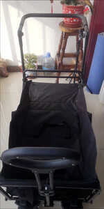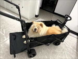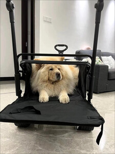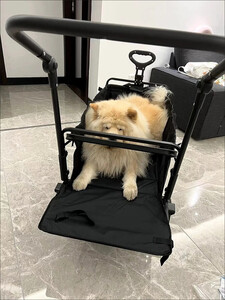 推车收到真的太喜欢拉。质量真的很好,我家毛孩子特别喜欢趴在上面。我本人坐在推车上也完全没有问题,承重能力很强。后板可以往下翻,放长的东西也可以,很灵活。推车推起来很轻松很流畅!