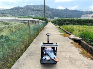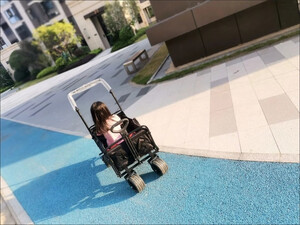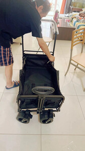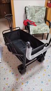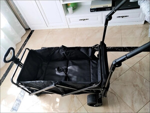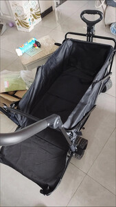 车架结实,车轮宽大灵活,质量很好。车子容量也很大,可以一次性装载很多东西,带推手的设计实用性很强,又可以溜孩子又可以拉货,非常喜欢。