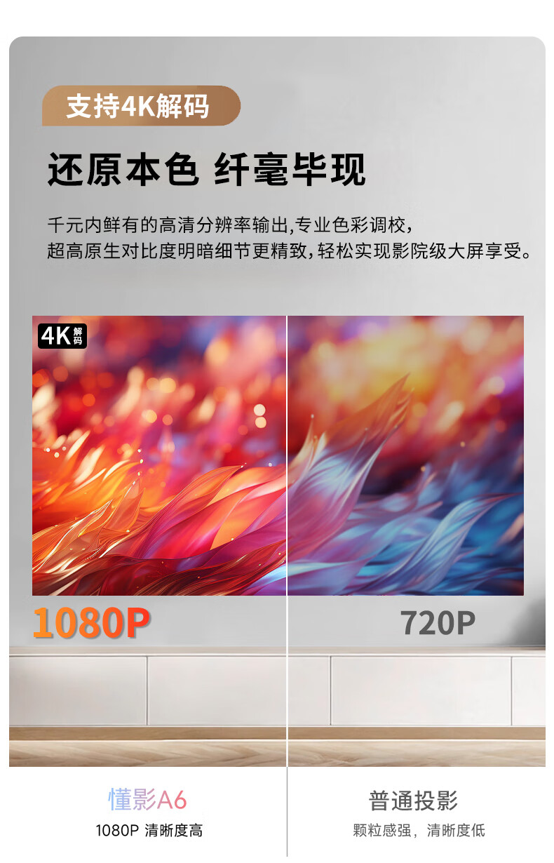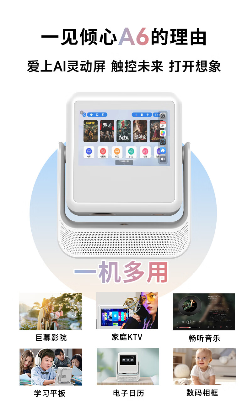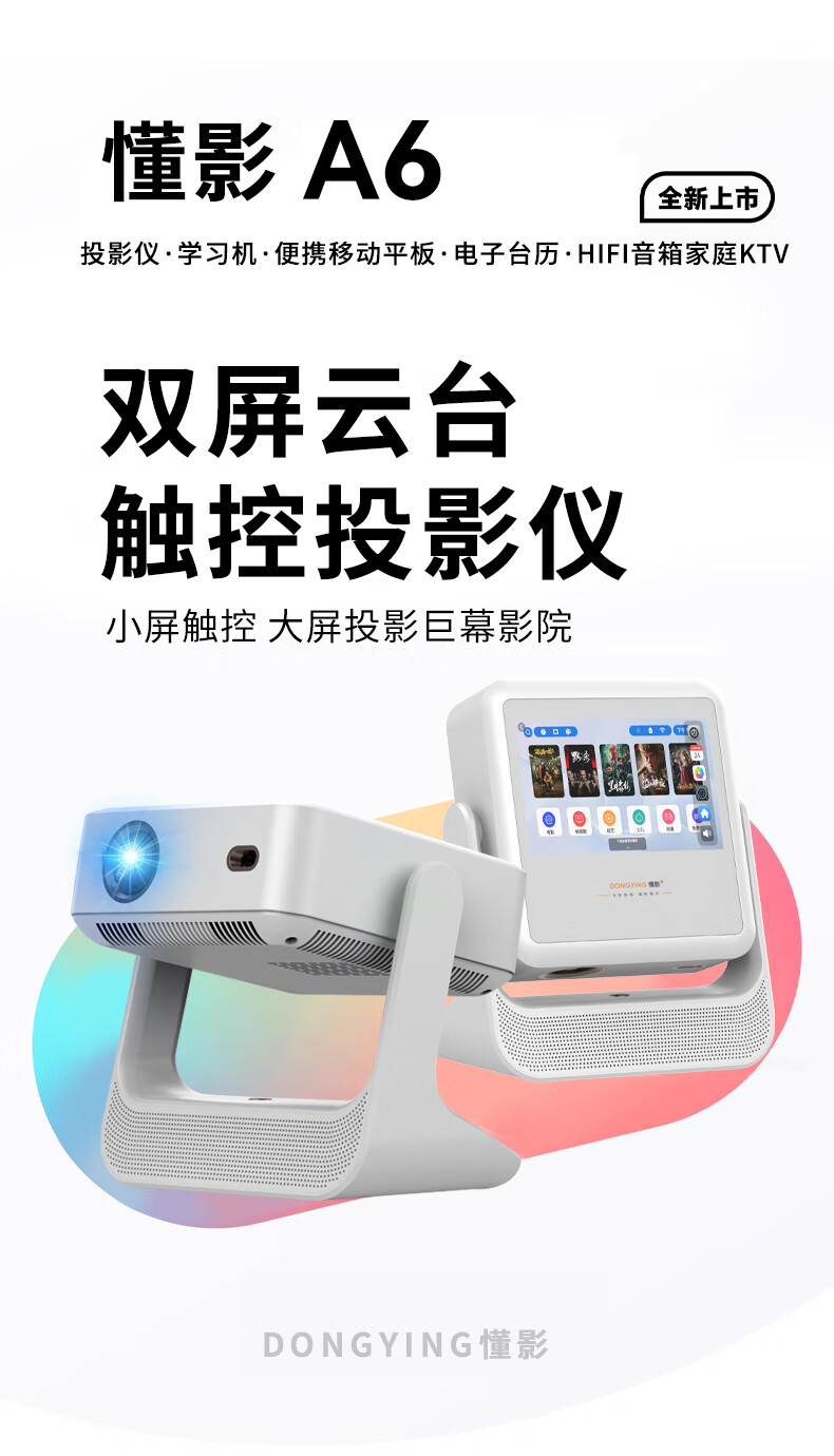 懂影A6投影仪家用超高清可连手机电视双屏触控便携式一体云台卧室家用影院平板智能音箱多合一 【懂影A6】高亮升级丨加赠不加价