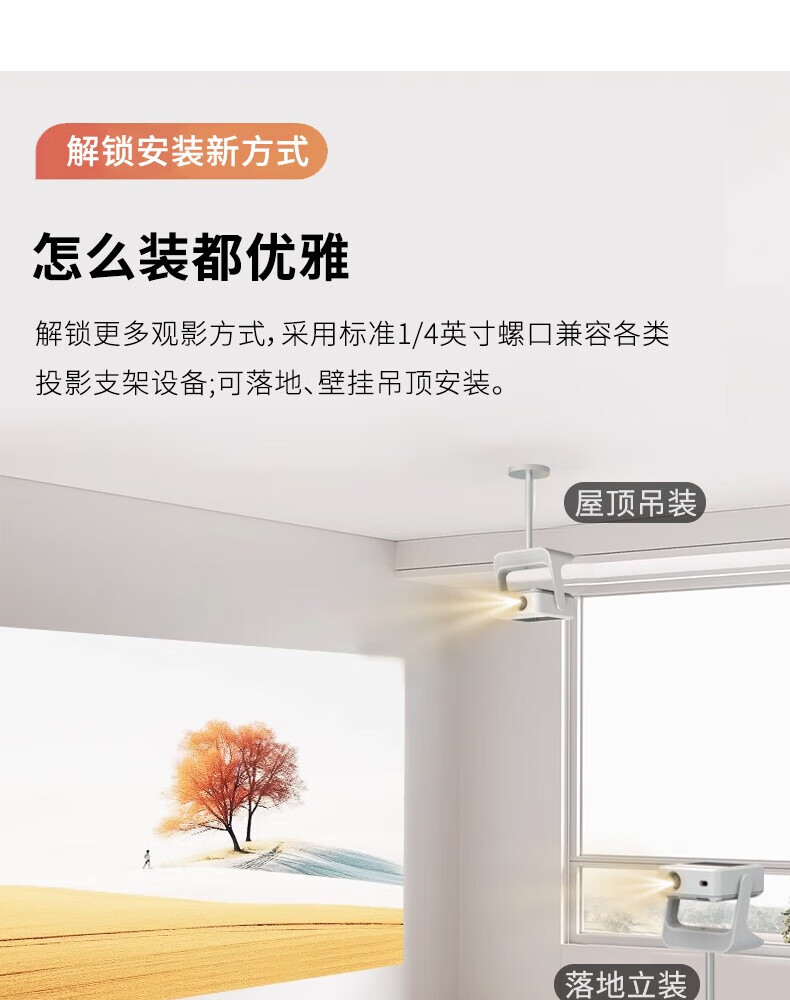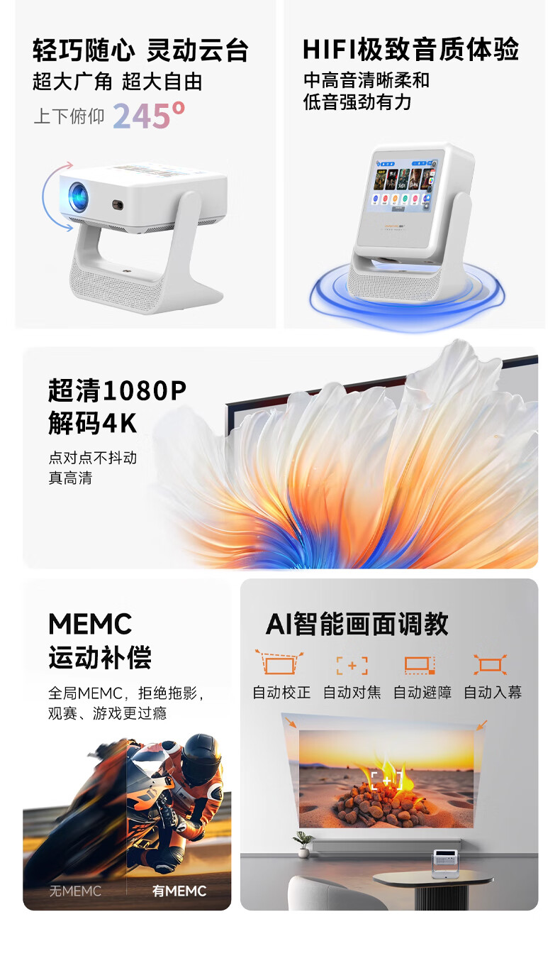 金立(Gionee)新款家用智能高清一体机家庭影院投影仪客厅卧室办公投屏 C6白色云台顶配款 5年质保+30天试用+365天免费换新