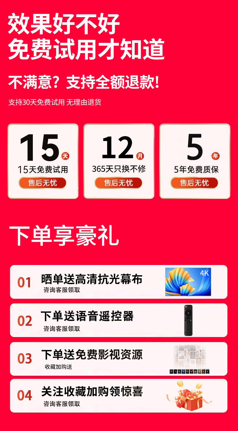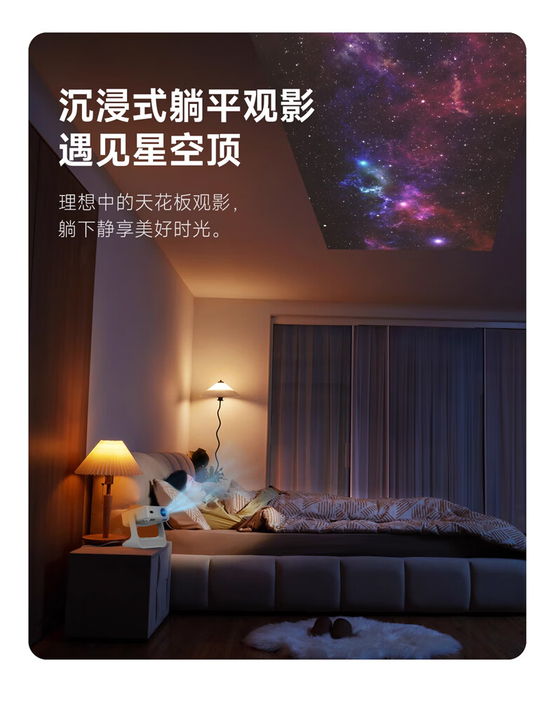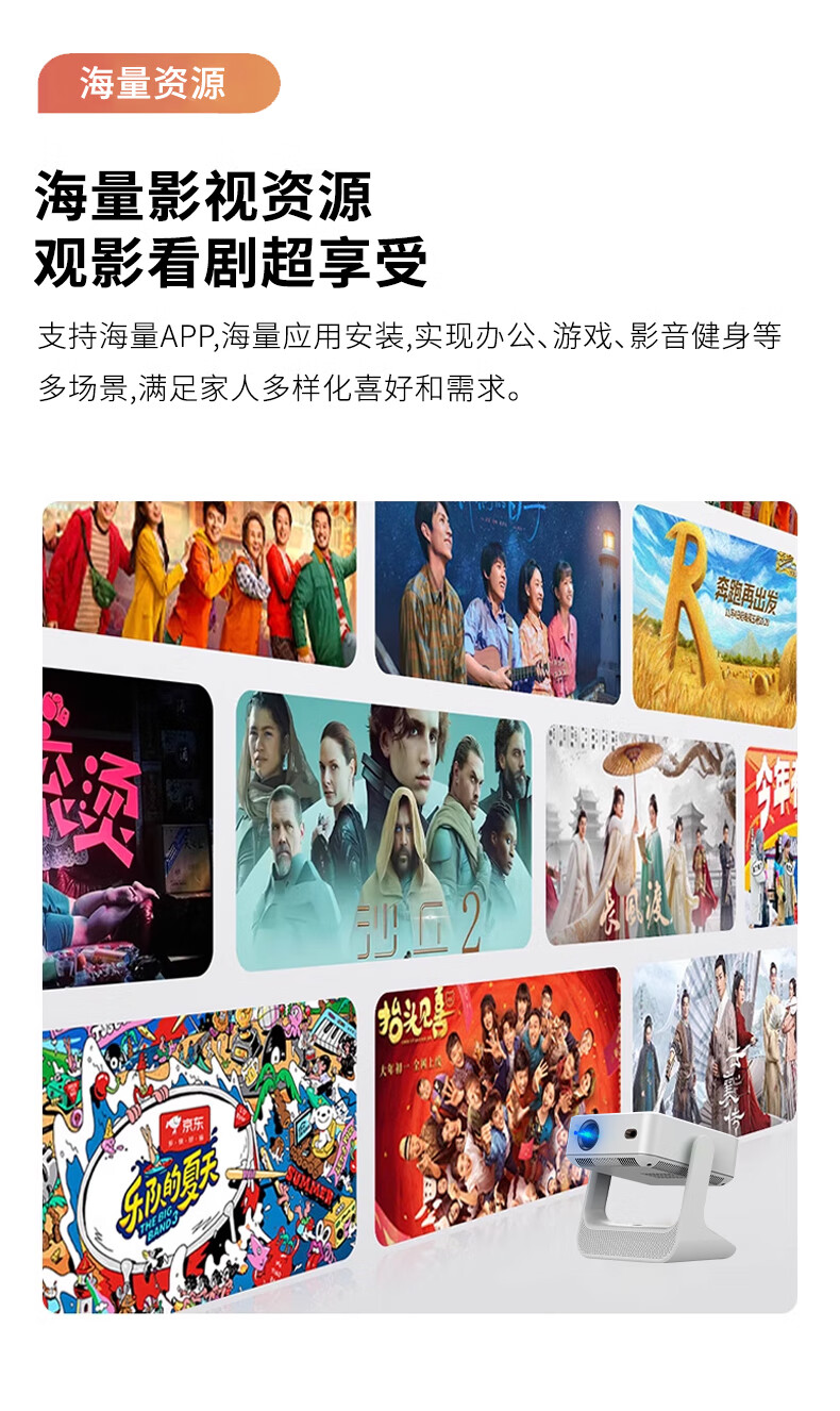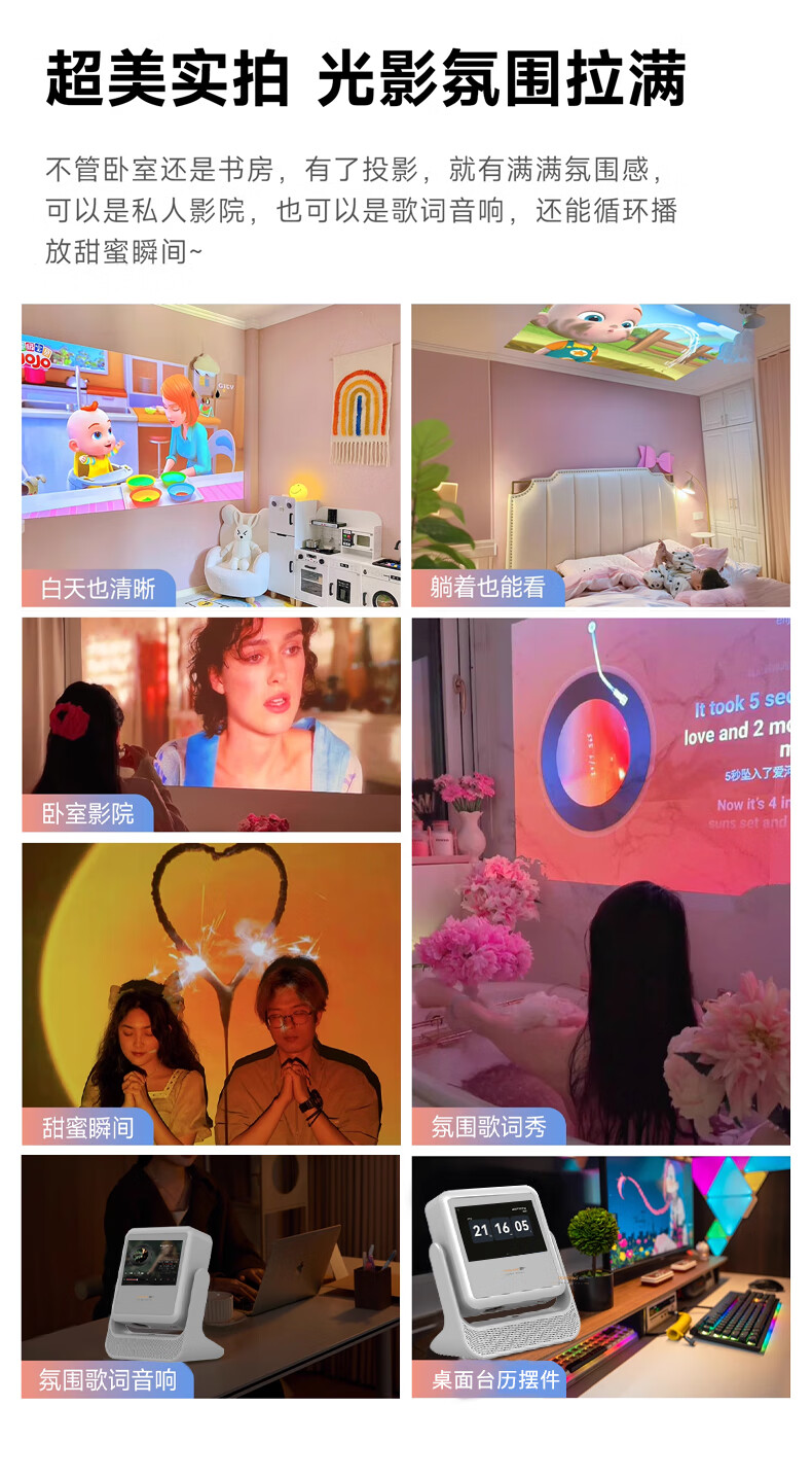 投影仪买回来一段时间了,用了好几次,有一下优点:1.设计时尚,美观,方便携带,投影角度可以平视,也可以投影到房顶上,很好。 2.显示效果在这个价位绝对算好的,很清晰观影体验感好,可以自动对焦,调整,很方便。 3.系统APP很多,都可以观看,就是有些要会员,还可以看电视,厂家送一个免费APP,但是最新电影盗版较多,不清晰。 4.外接U盘、手机投影、电脑都可以连接,很方便,显示效果都很好。 5.音响效果很好,比一般普通的音响效果要好很多,有影院的效果,就是不送话筒,没办法体检唱歌效果。散热风扇声音稍微大点,但是影响不大。还有就是3D电影客服给了个网址要自己下载,比较麻烦。 总结,这款投影仪很值得购买,物超过所值,客服也很耐心给你讲解怎么使用。