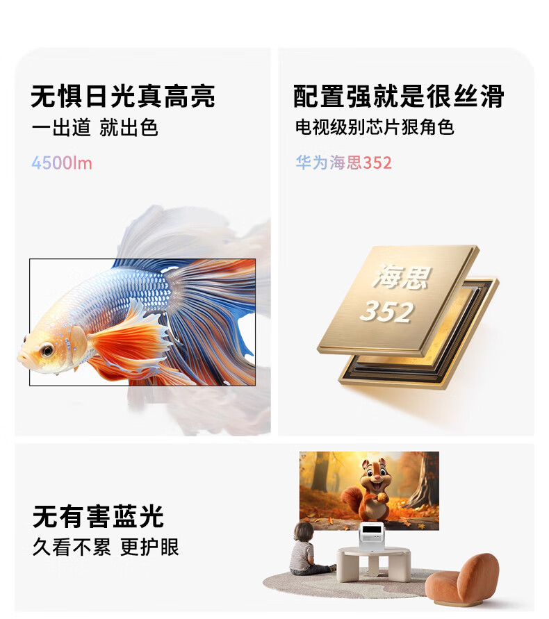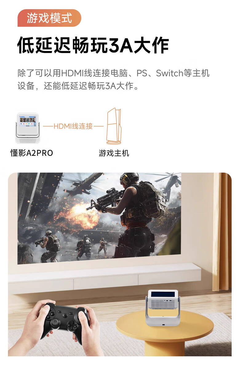 尝试玩一会儿,亮度不错,具有自动梯形矫正功能。你说即使不侧头也能观看,只是机子风扇噪音稍大。整体效果符合这个价格。此外,安装方便,无需支架,画面自动矫正。
