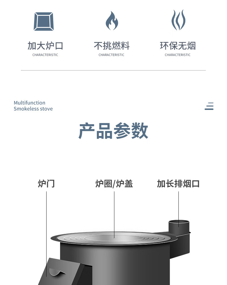 户外柴火炉便携式露营野炊多功能柴火炉农村家用小型气化炉柴火炉 登山炉+USB鼓风机