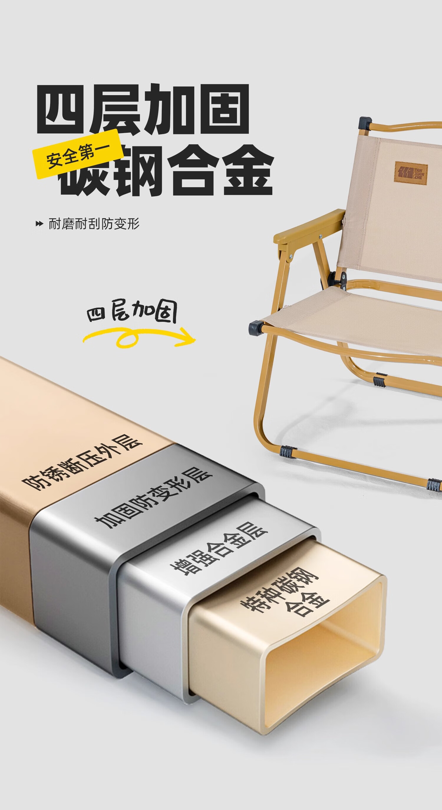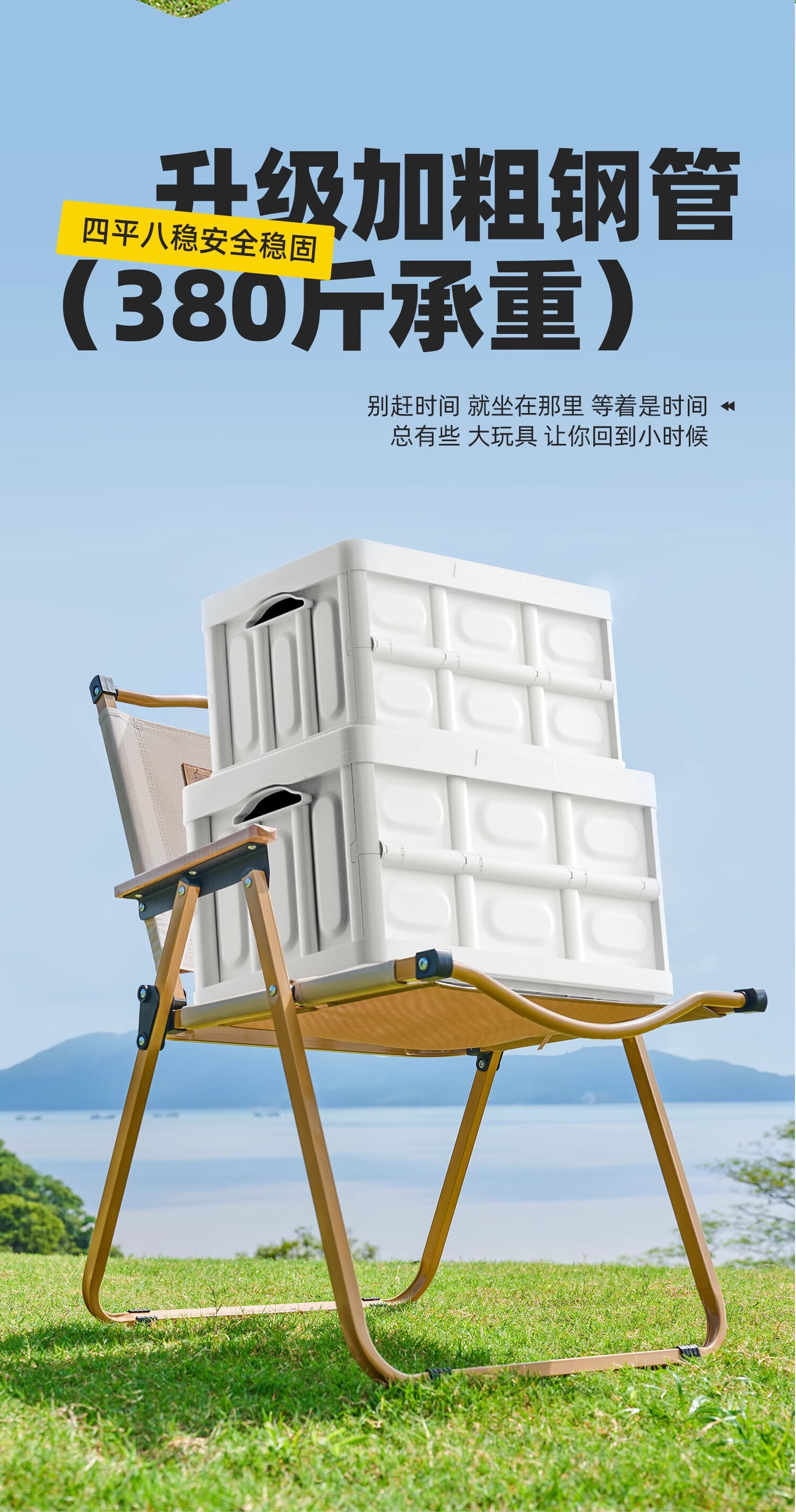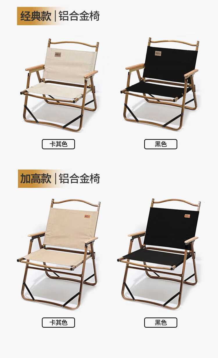 探险者户外折叠椅露营椅子克米特椅便携式桌椅套装野餐椅沙滩椅装备全套 石墨黑架【卡其】加大升高舒适款