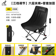 Aoran 户外月亮椅便携折叠椅露营躺椅野外沙滩椅写生折叠凳休闲钓鱼椅 【三档调节】高靠背+加粗钢管+经典黑