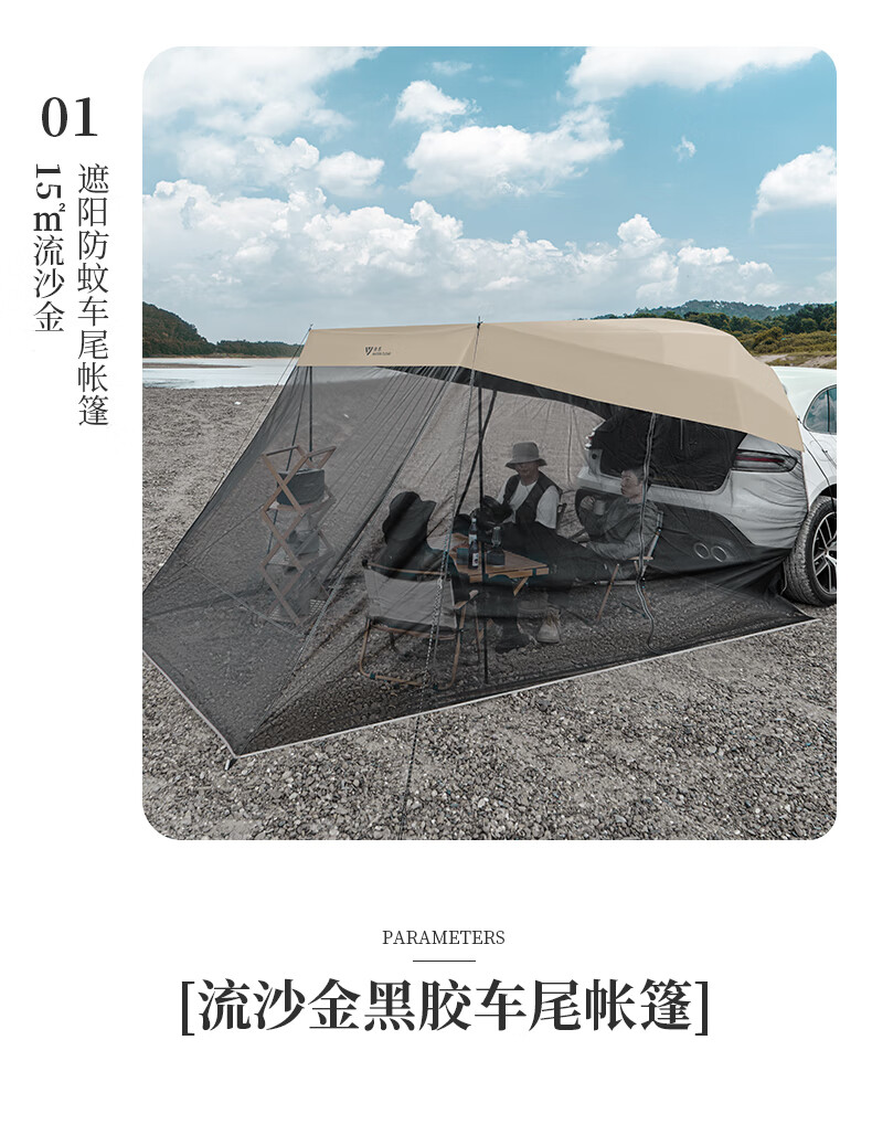 清系车尾延伸帐篷天幕 便携式自驾野营遮阳防雨露营车边帐篷 流沙金黑胶车尾帐-390*200*180