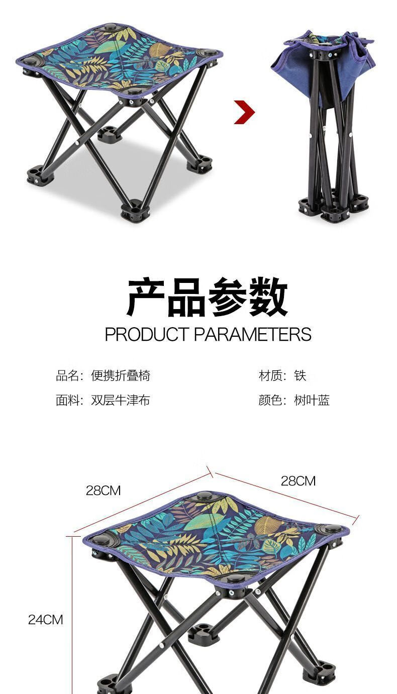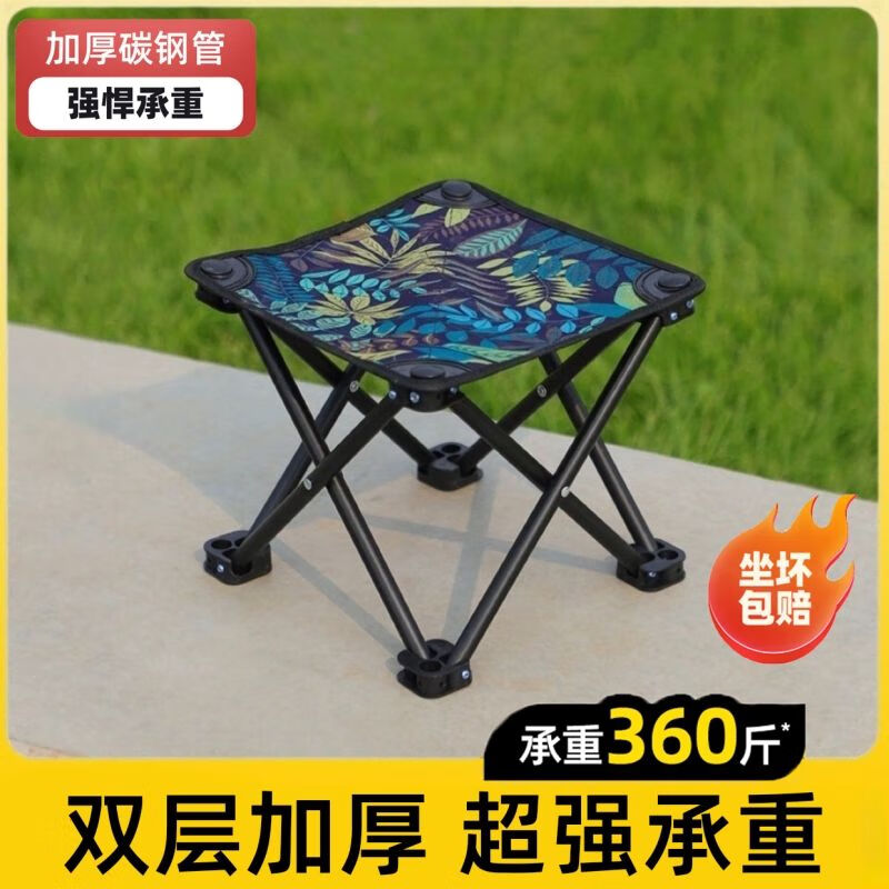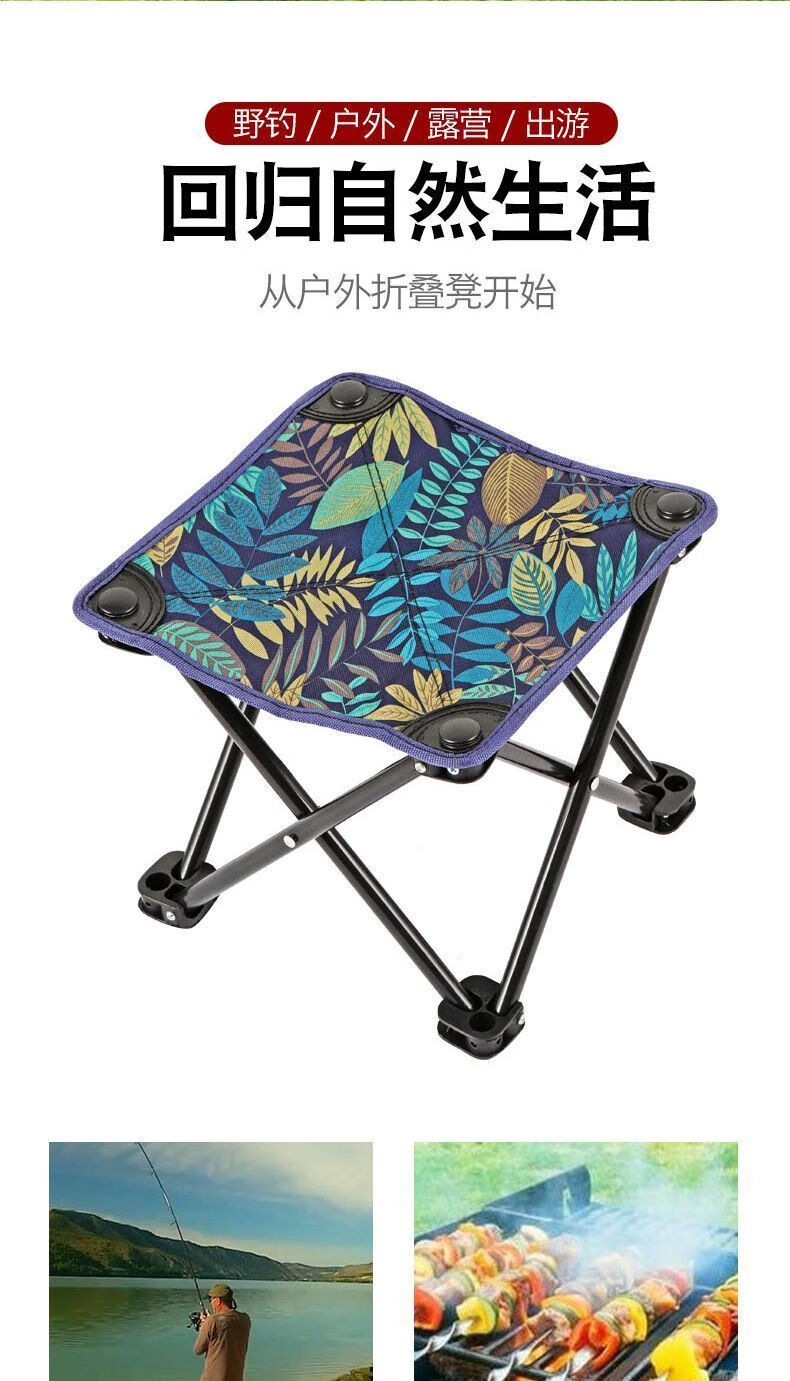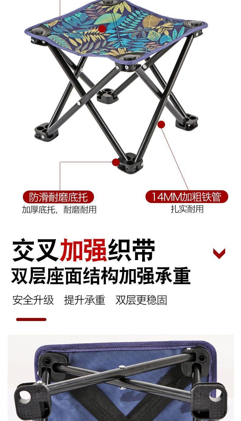 椅子板凳小椅子户外钓椅马扎钓鱼便捷多功能超轻四角凳子马扎 枫叶蓝色【ABC增加承重】