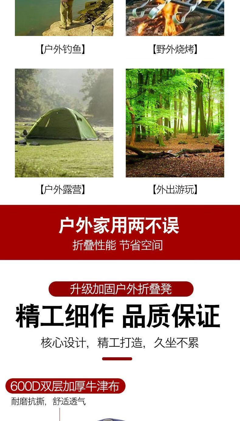 这个小凳子的质量真的不错,坐椅的布料比较牢靠,小凳子的脚架厚实,折叠式收纳很节省空间,坐在上面也非常舒服,活动价格特别便宜,这折叠凳子的质量真的太赞啦!我很喜欢!到货也很快,还是邮政快递,送乡很方便领取!感谢店家的活动,特实惠