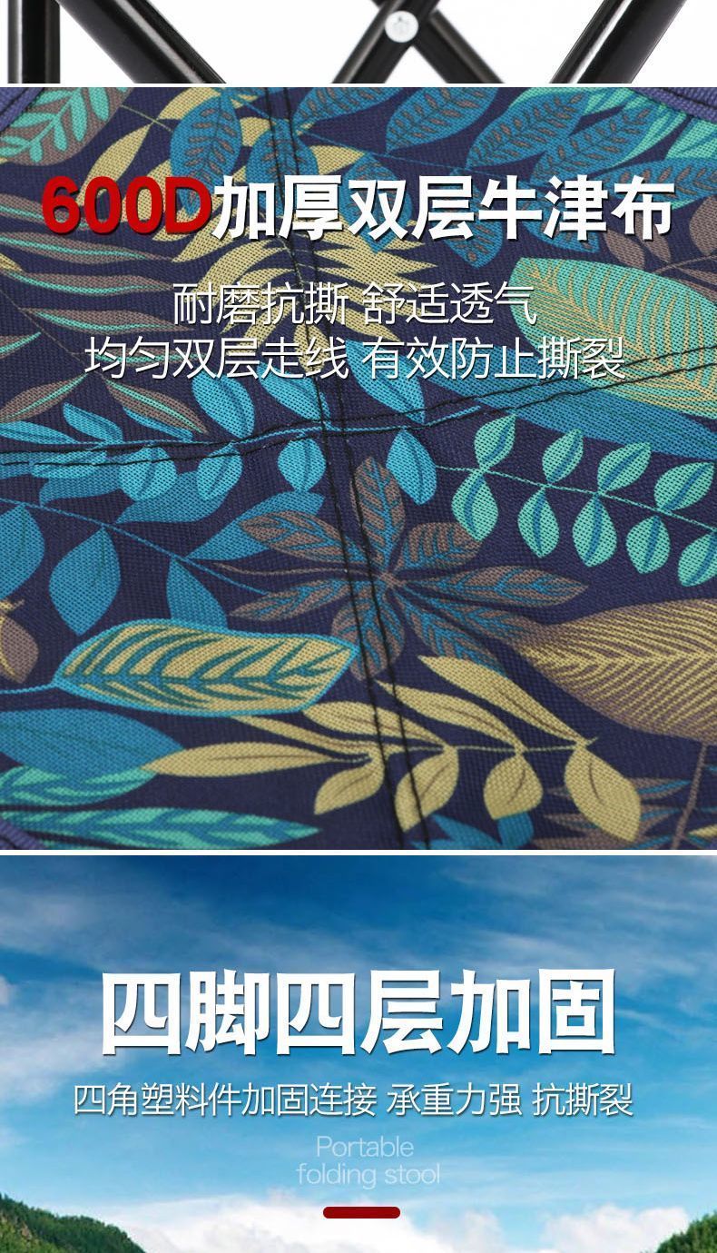 智宙【户外神器】折叠椅子便携式钓鱼椅凳美术生画凳火车写生椅 [树叶蓝] 加固加粗[中号送收纳袋]