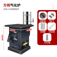 烽点加厚铸铁内胆气化无烟柴火灶室内农村柴煤两用取暖炉烤火冬天木柴 43方刚+水箱+3米管配件
