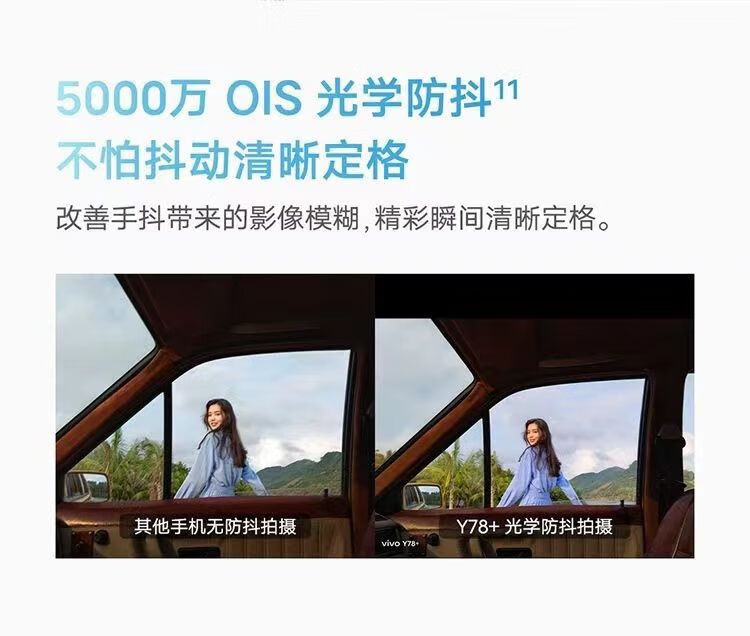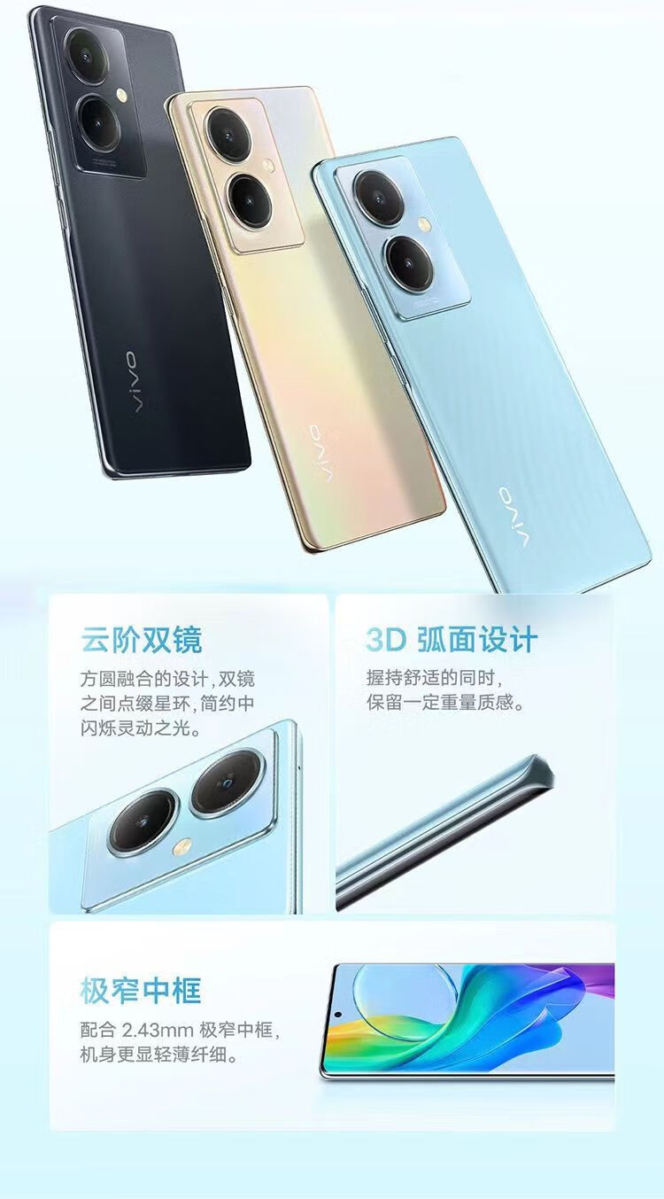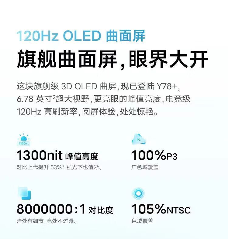 vivo Y78+ OLED曲面屏 电竞游戏 大电池手机 5000万光学防抖 拍照手机 天青色 8GB+256GB 单机+第三方品牌快充+店保一年