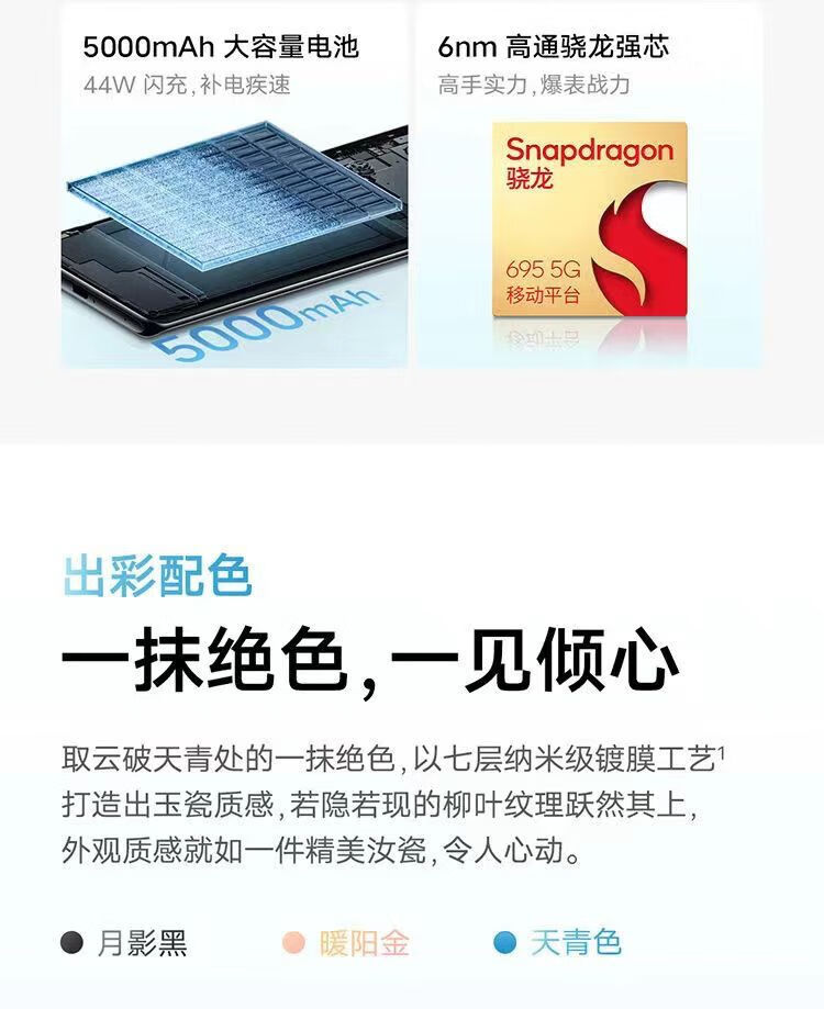 vivoY78+新款曲面屏全网通5G智能手机5000毫安长续航拍照游戏学生 天青色 12GB+256GB 单机+快充配件+【店保一年】