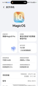 观望了很久,终于入手了Magic8 Pro,使用一周后感觉非常满意,果然没让我失望! 【外观设计】 首先颜值真的很高!我买的是黑色,AG磨砂玻璃后盖手感温润如玉,完全不沾指纹。镜头模组的设计也很有辨识度,整体质感非常高级,拿在手里就是一种享受。 【屏幕效果】 这块屏幕绝对是顶级水准!6.8英寸的巨屏,无论是刷剧还是打游戏,视野都极其开阔。峰值亮度非常高,大太阳底下看手机也清清楚楚。护眼功能做得也很到位,长时间看屏幕眼睛不容易疲劳。 【性能表现】 搭载的(第三代骁龙8)芯片果然名不虚传,性能强悍到溢出。我玩《原神》全高画质也能全程满帧运行,机身只是温热,散热控制得相当不错。日常使用各种App秒开,切换丝滑流畅,再用回旧手机感觉卡成PPT。 【拍照系统】 这是最让我惊喜的部分!鹰眼相机系统名副其实,对焦快准狠,抓拍我家跑来跑去的小猫都能瞬间定格。长焦镜头素质极高,远处风景拉过来依然清晰,夜景拍摄也纯净噪点少。无论是日常记录还是创作,它都能完美胜任。 【续航充电】 电池非常耐用,正常使用一天一充完全没问题。附带的120w快充头充电速度惊人,洗漱吃个早