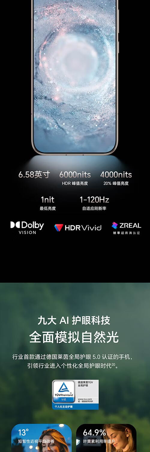 高频PWM调光;SGS认证;巨犀玻璃;德国莱茵护眼;LTPO屏幕