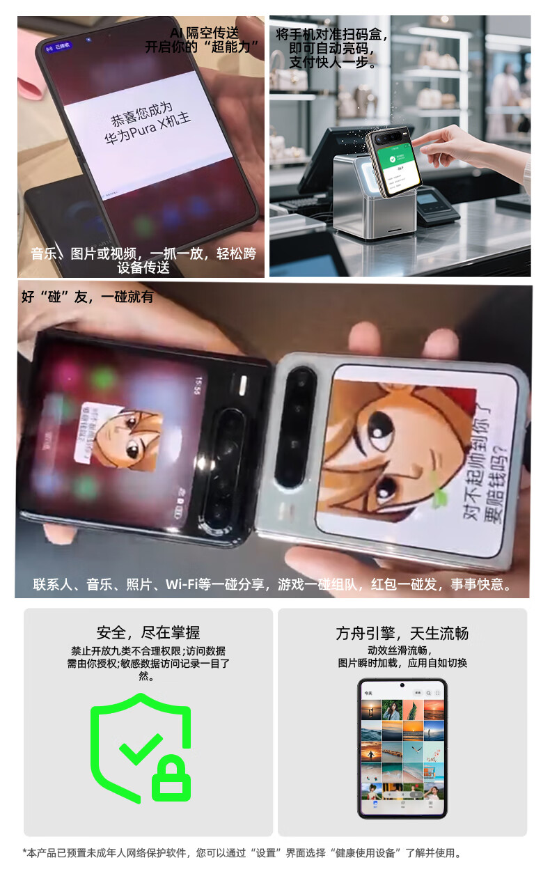 华为(HUAWEI)PuraX折叠 阔型屏胖X小折叠华为手机官方标配+联保电子保卡已注册 幻影黑 12GB+256GB 补贴价格+咨询客服+送耳机