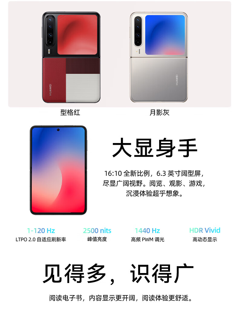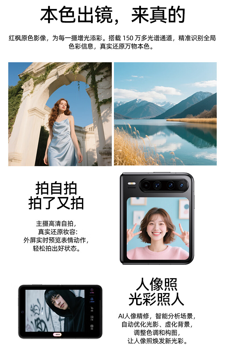 AI大模型,折叠屏,轻薄,LTPO屏幕,高频PWM调光,全焦段影像,无线充电,NFC
