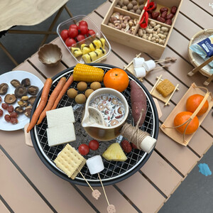 原始人围炉煮茶烤火炉套装煮茶器具全套铸铁茶壶煮茶烤奶茶罐茶杯配件 圆盘点心盘