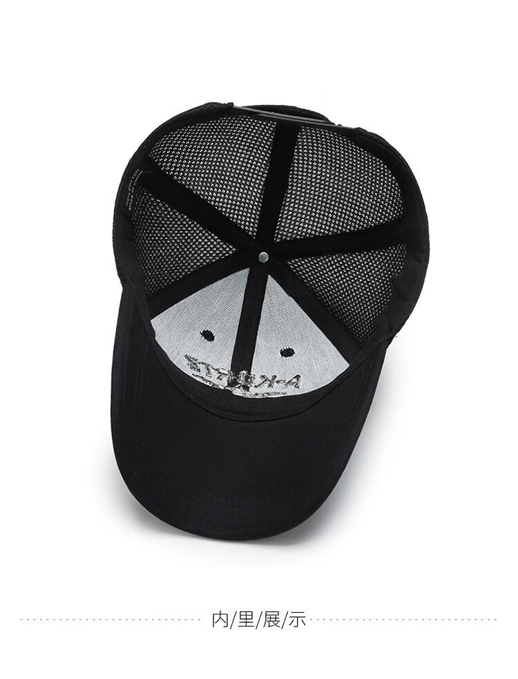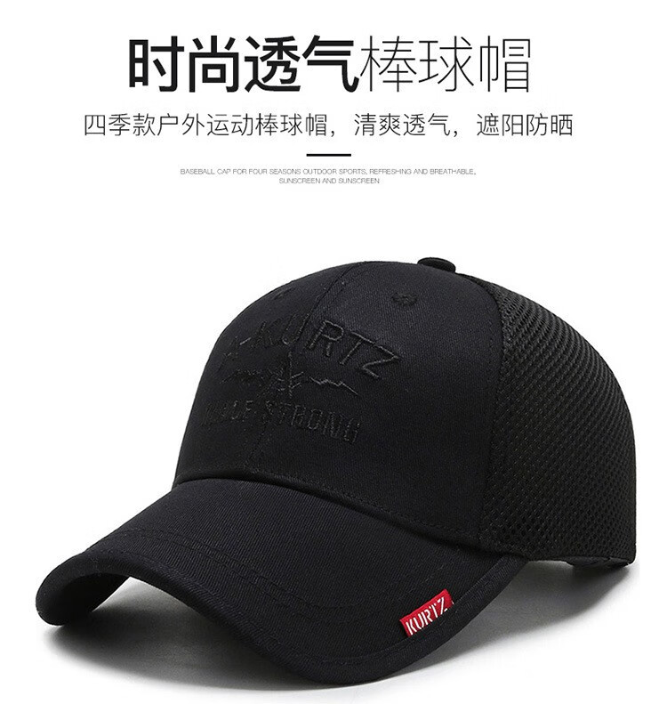 娆蝶 男士棒球帽四季夏季防晒字母刺绣鸭舌帽户外休闲运动软顶帽子女 网眼黑色