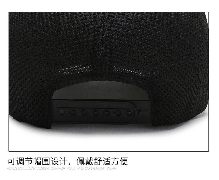版型设计:和店里资料一样,版型设计效果不错。 舒适程度:帽子戴上舒适度没问题,夏天遮阳戴上,后面有网面,应该不会热。 时尚程度:时尚新潮,戴上时尚,帽子后面是网面设计。 产品质量:没有多余线头,颜色统一,没有颜色差异。 尺寸大小:帽子尺寸大小可以调节,根据自己头围调节大小。