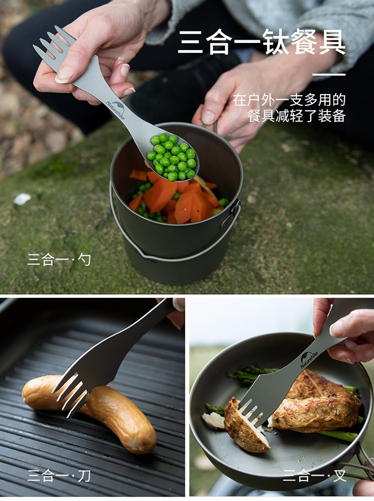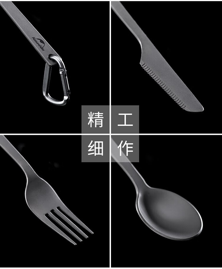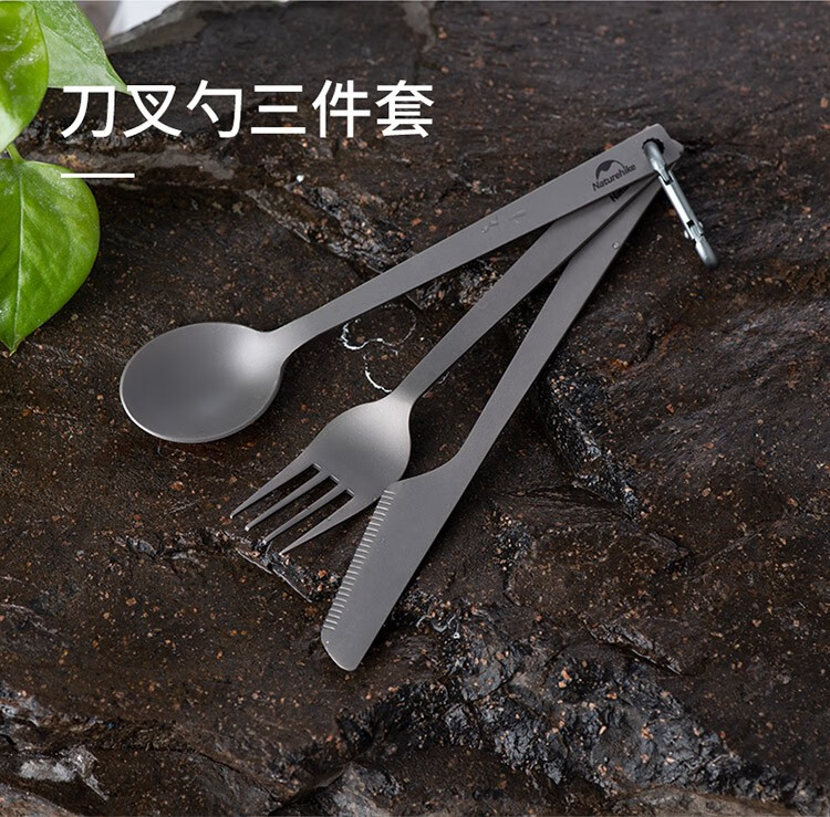 Naturehike挪客户外钛色刀叉勺 三合一餐勺餐叉野餐便携餐具露营野营装备 钛色-刀叉勺套装