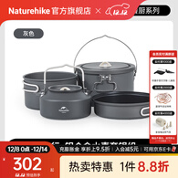 Naturehike挪客铝合金野营套锅 便携户外露营野营厨具锅具野炊套装套锅 灰色(水壶套锅组)