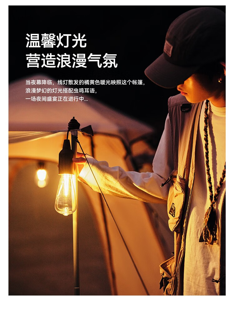 牧高笛(MOBIGARDEN)星汉营地灯 户外露营便携复古氛围灯LED拉线吊灯 和风沙(有灯罩/无电池)