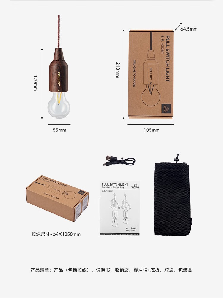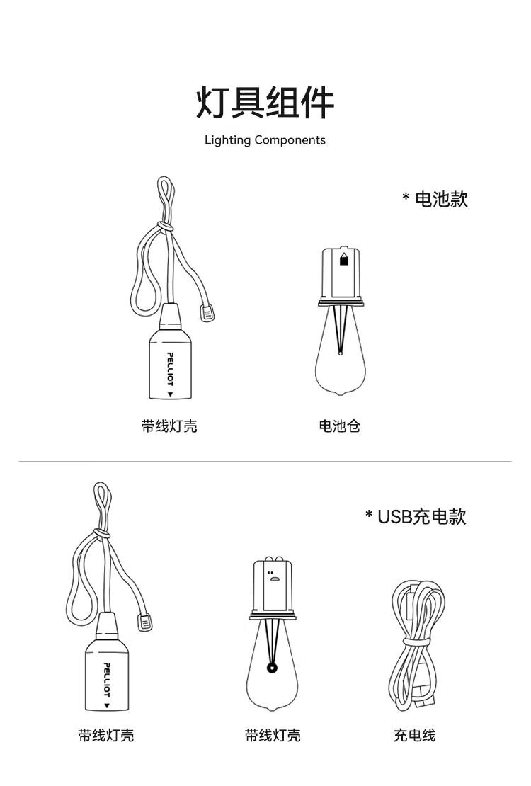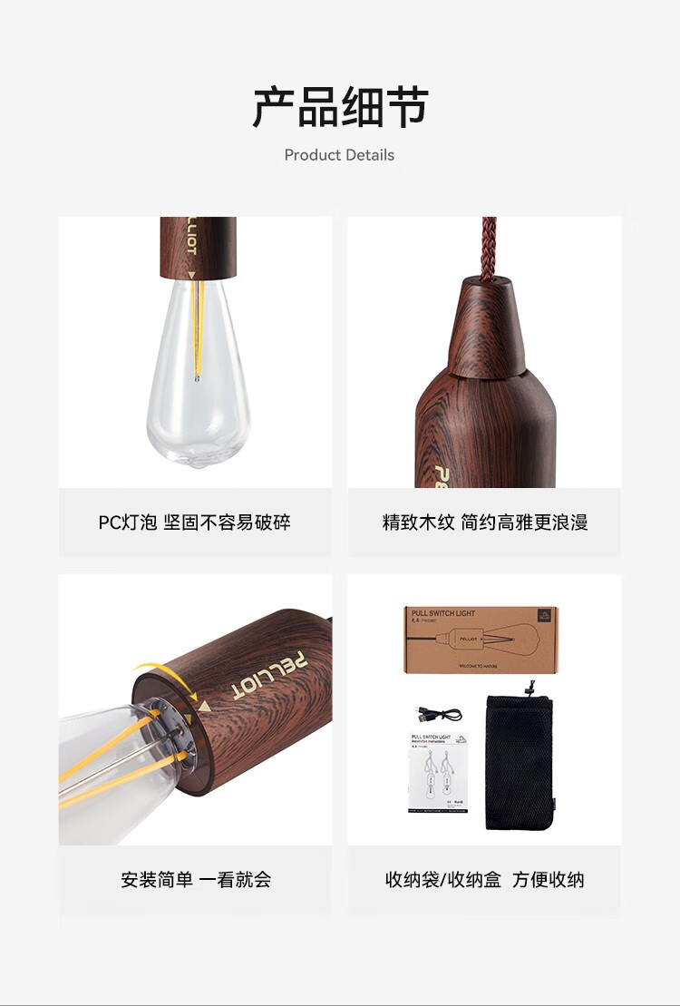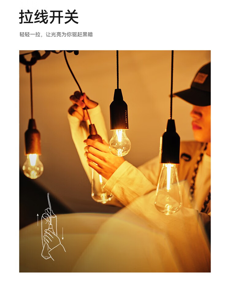 伯希和(Pelliot)户外拉绳露营灯帐篷灯野营充电式营地应急照明天幕氛围灯 USB-奶泡款