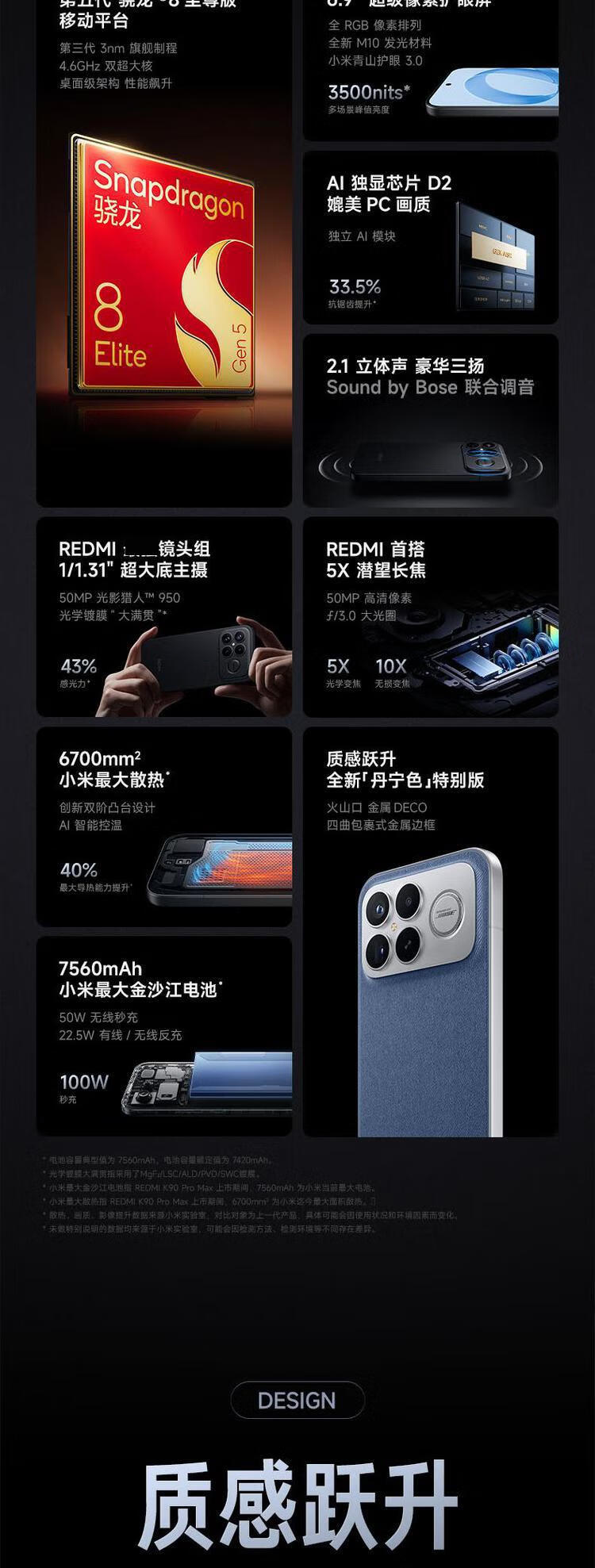 小米REDMI K90 Pro Max 国家补贴 第五代骁龙8至尊版 7560mAh大电池 BOSE联合调音 红米k90promax 黑色 12GB+512GB 官方标配