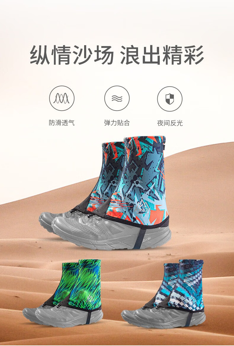 尺码大小:正常尺码 产品颜色:蓝色的非常漂亮,还能反光,夜间更安全 适用场景:徒步时有效防沙,防虫,新款设计更合理,奔跑时不会脱落。