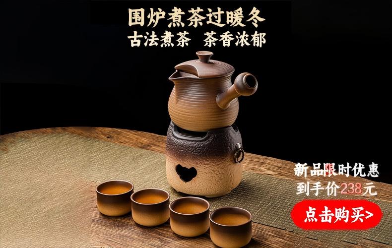 容山堂煮茶罐罐茶古法煮茶器烤奶茶罐煮茶炉户外围炉煮茶器具全套 高海带盖煮茶器+粗陶茶杯*4
