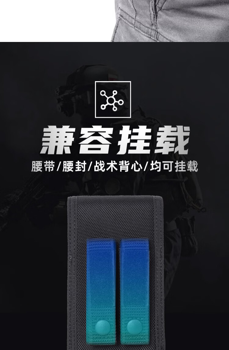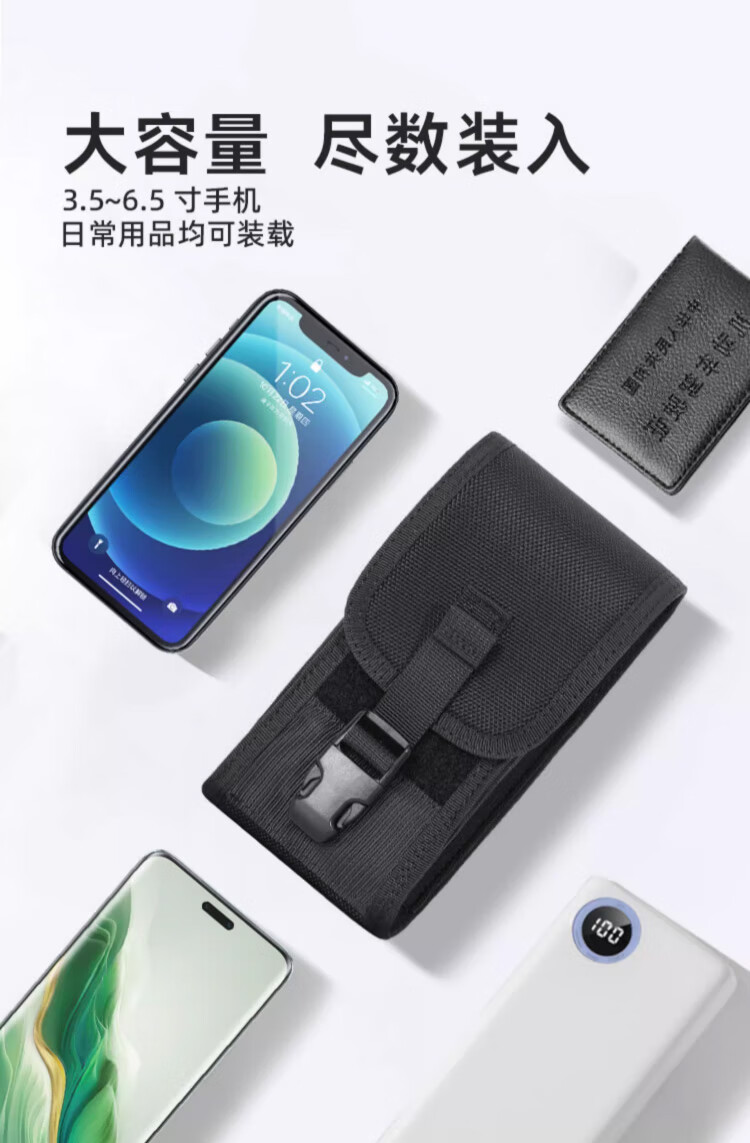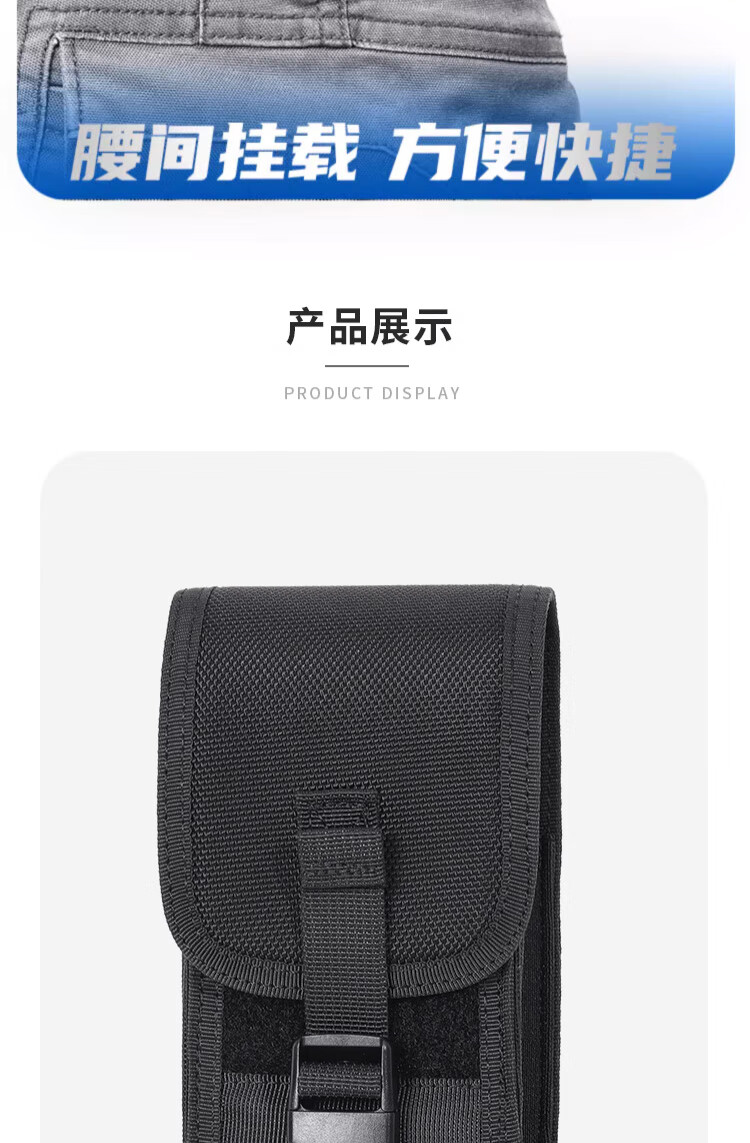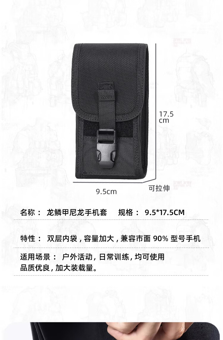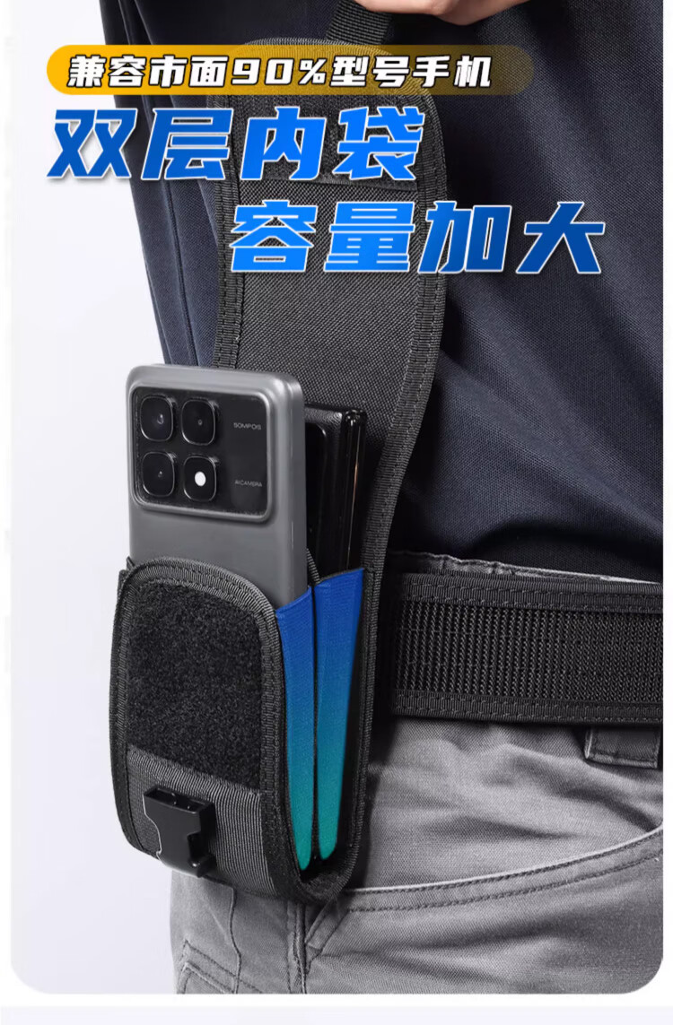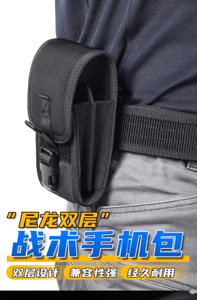 高密度防泼水尼龙面料,手机、香烟、驾驶证都可以使用,防滑防割、经久耐用、双层设计、可挂腰带和战术背心,魔术贴设计,便于10一首固定,挂载兼容,按压锁扣单手解锁,向上打开,即可进行取物,容服务,好物流快。