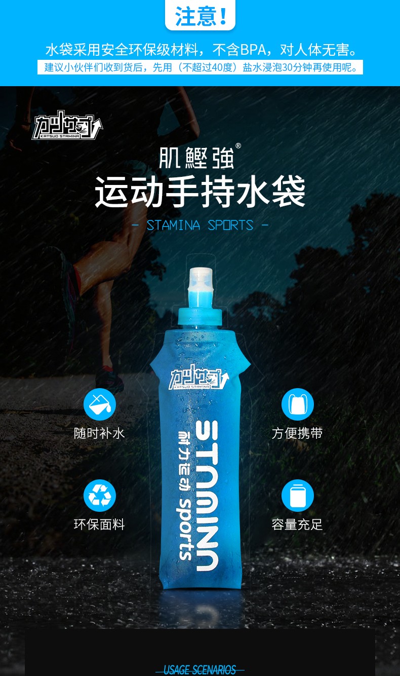 katsuostamina肌鲣强折叠水袋 越野马拉松跑步徒步登山户外骑行运动便携 浅蓝色