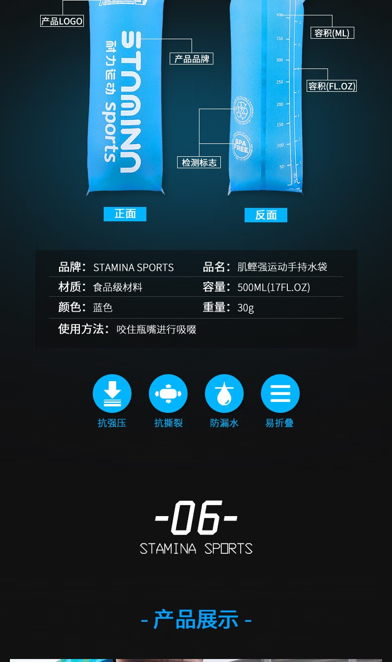 肌坚强,国际大品牌,品控一流!折叠水袋做得很好,不漏水!适合日常跑步越野训练,随身携带方便!有需要还会回购!服务态度很好!
