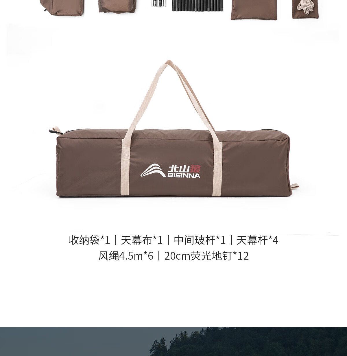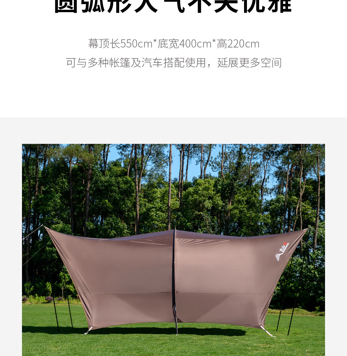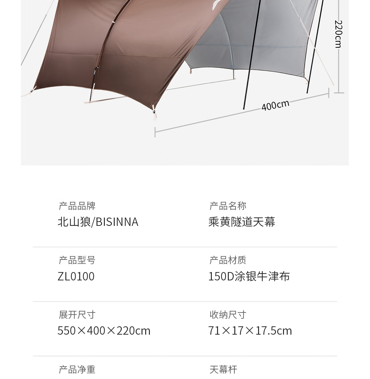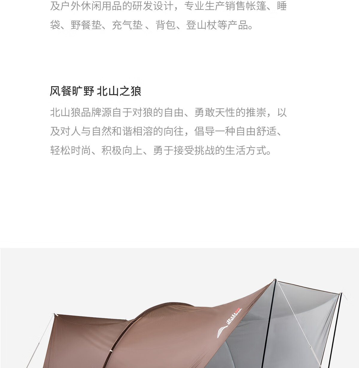 北山狼 户外露营防雨防晒大空间隧道式牛津布 双层银胶天幕帐篷 咖啡色