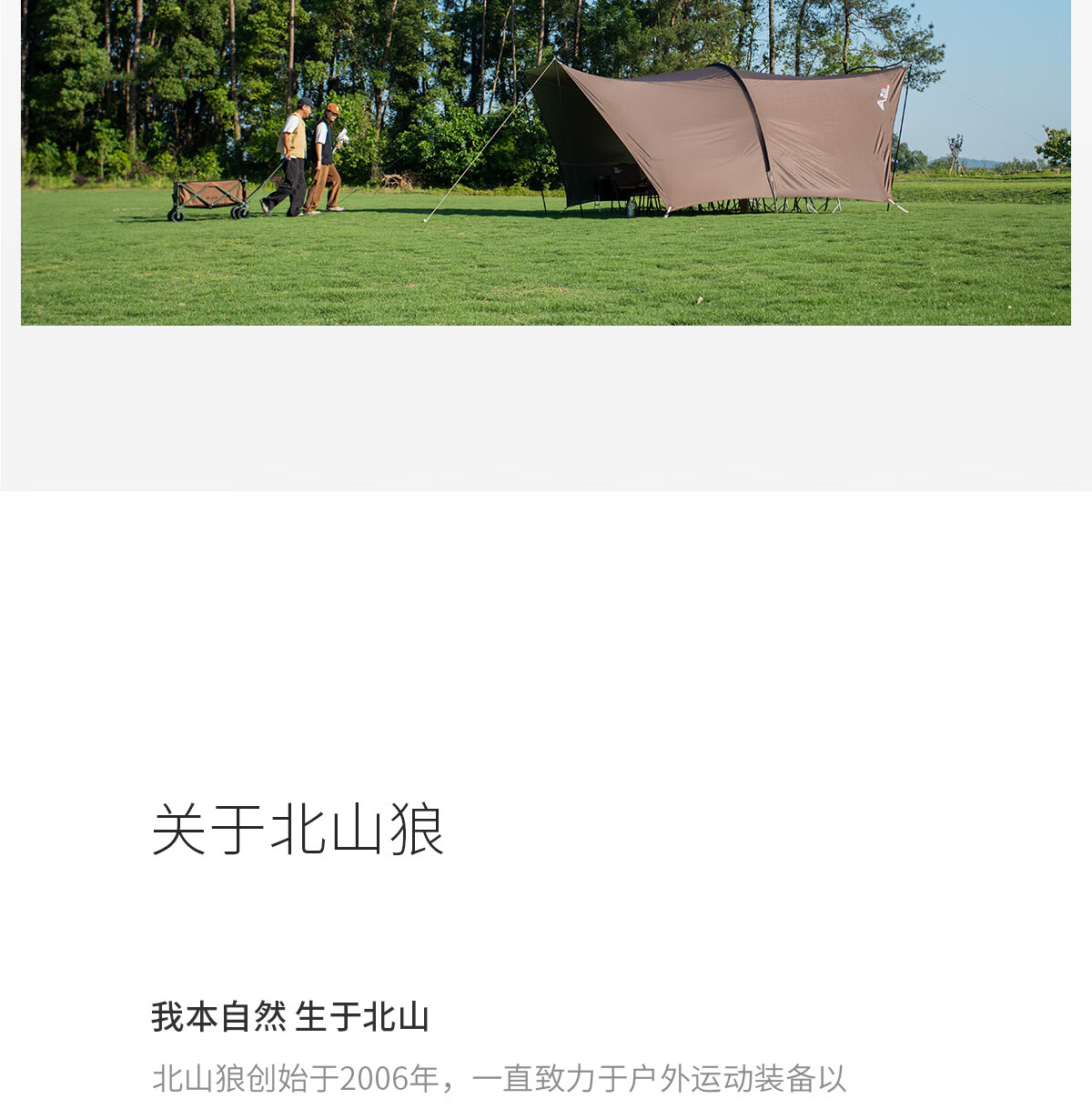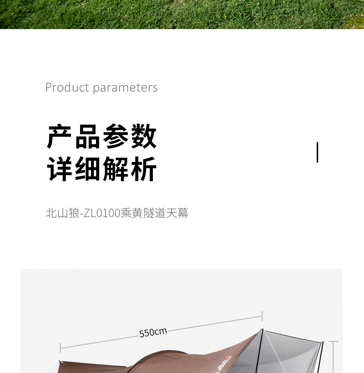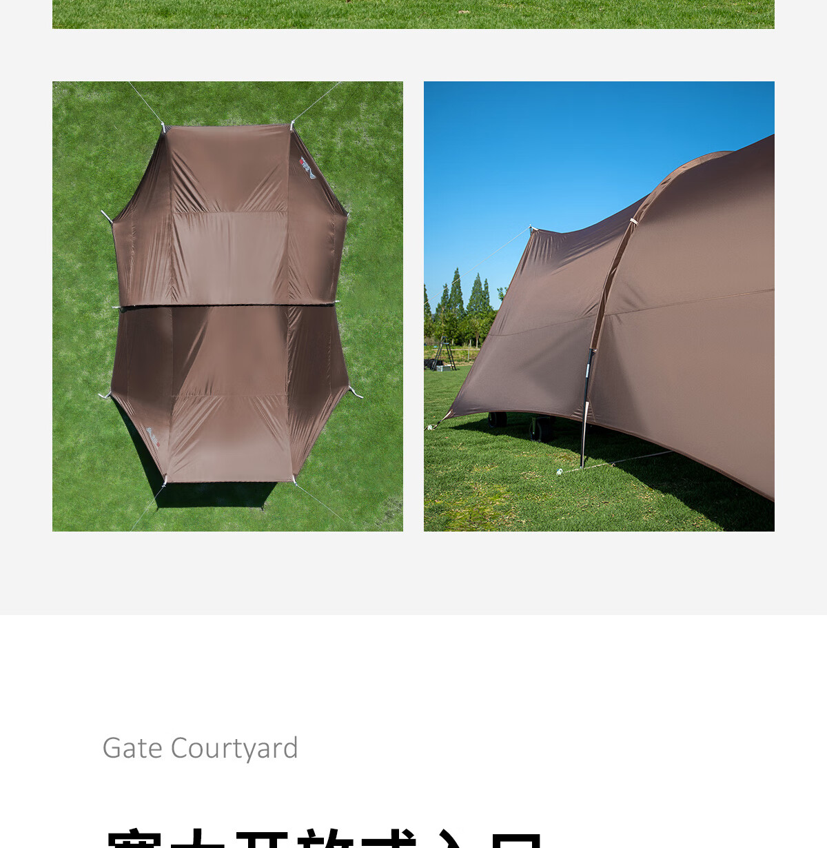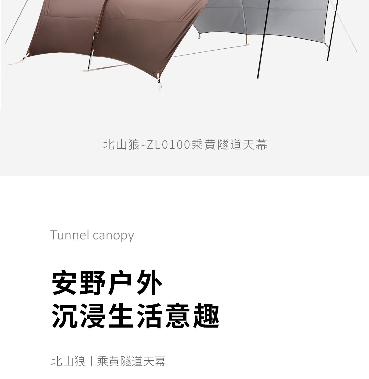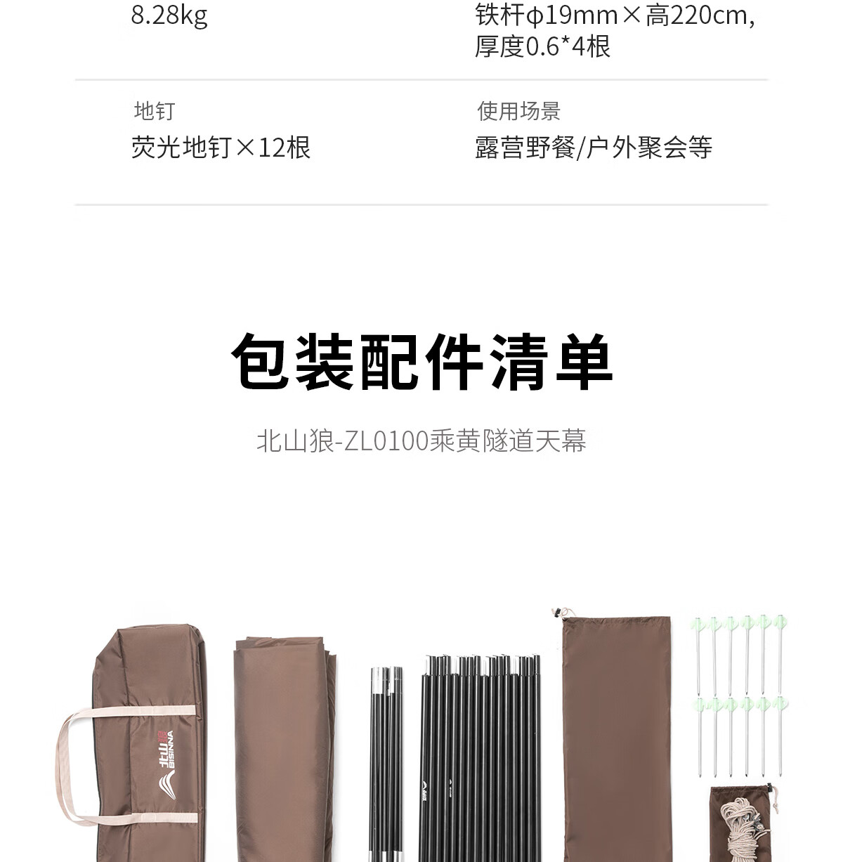 北山狼 户外露营防雨防晒大空间隧道式牛津布 双层银胶天幕帐篷 咖啡色