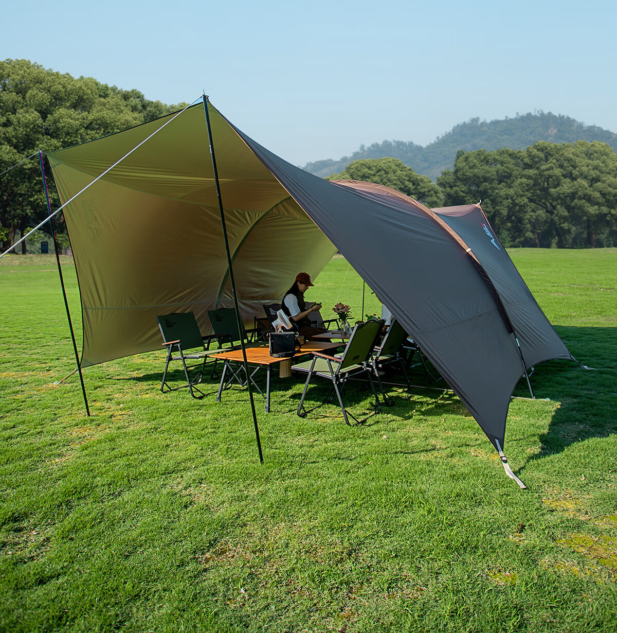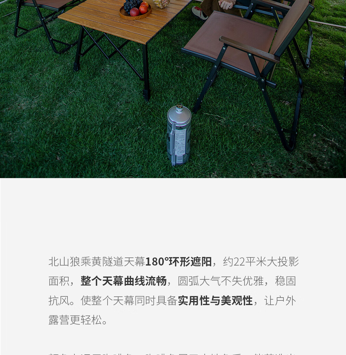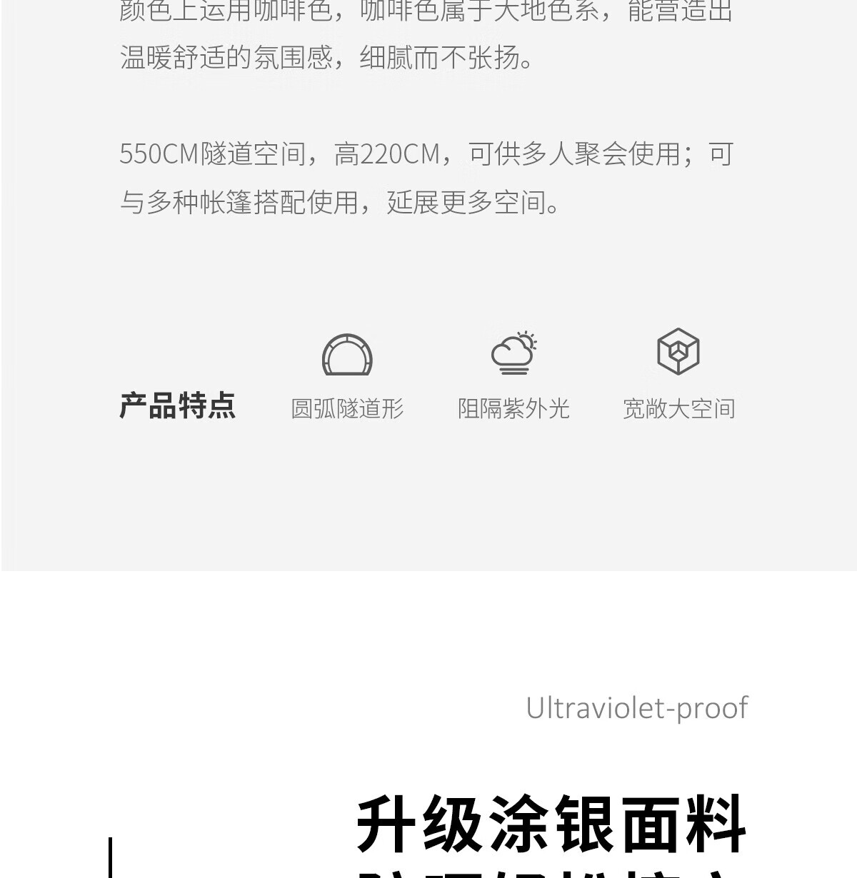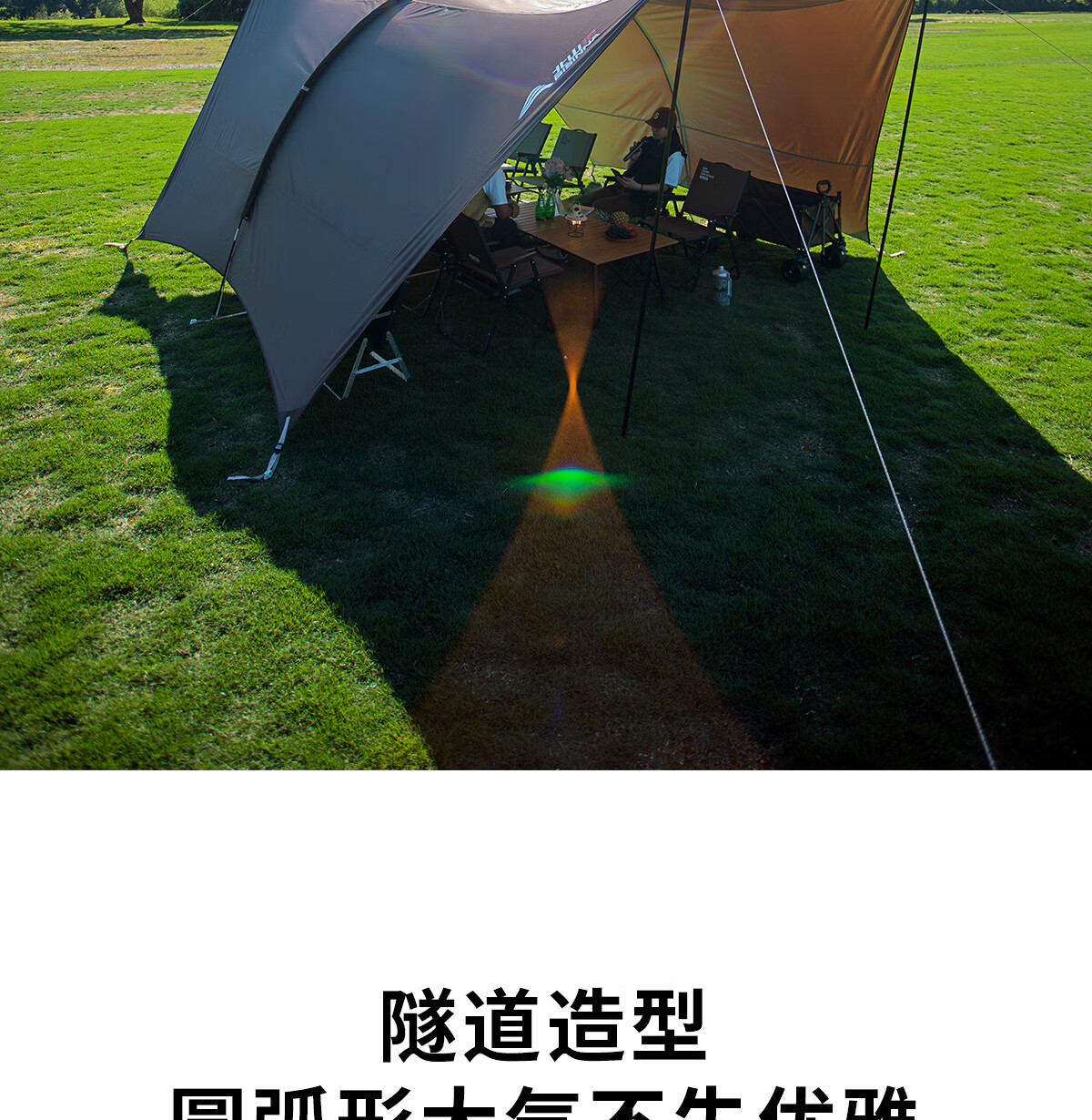 北山狼 户外露营防雨防晒大空间隧道式牛津布 双层银胶天幕帐篷 咖啡色