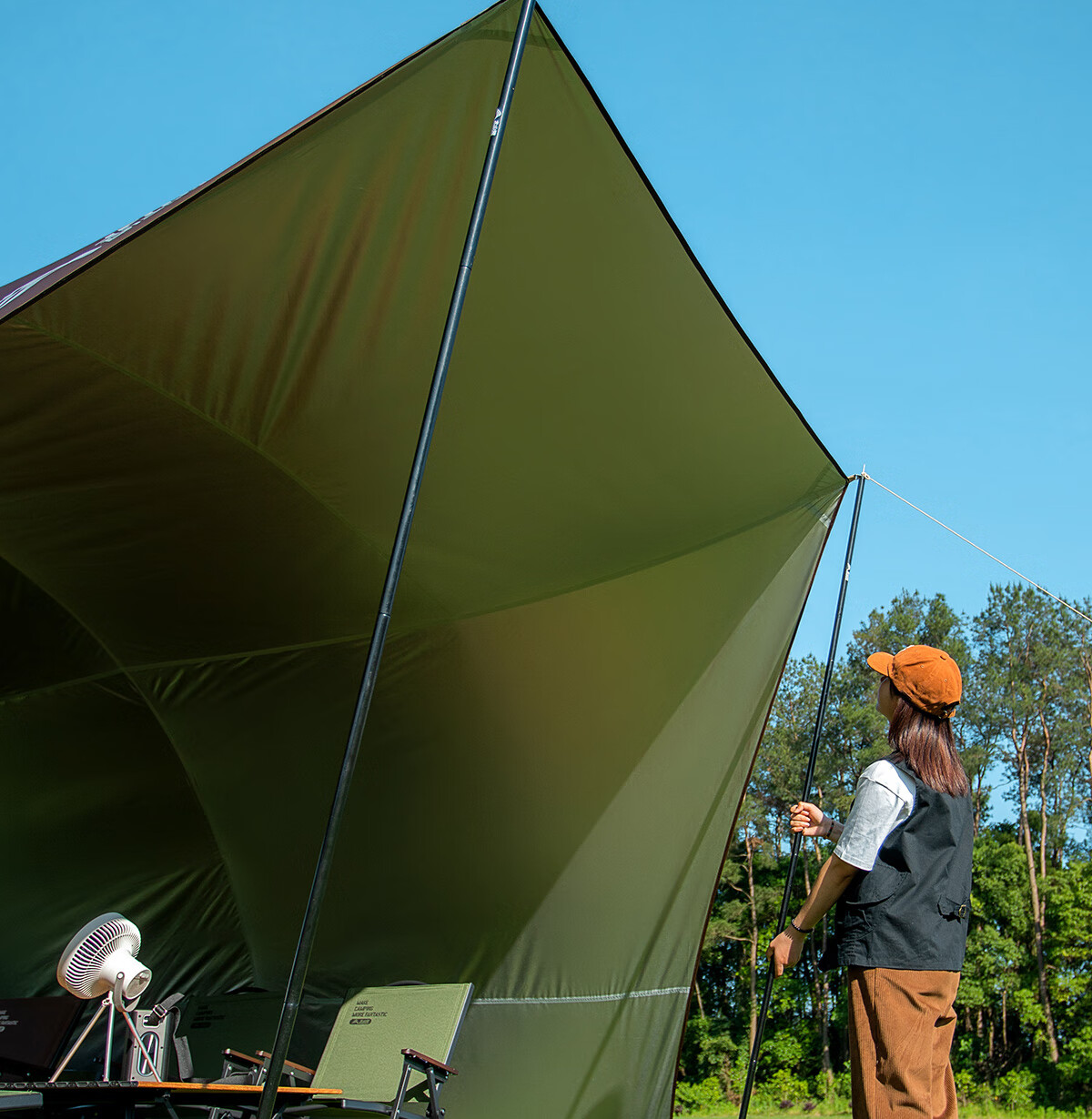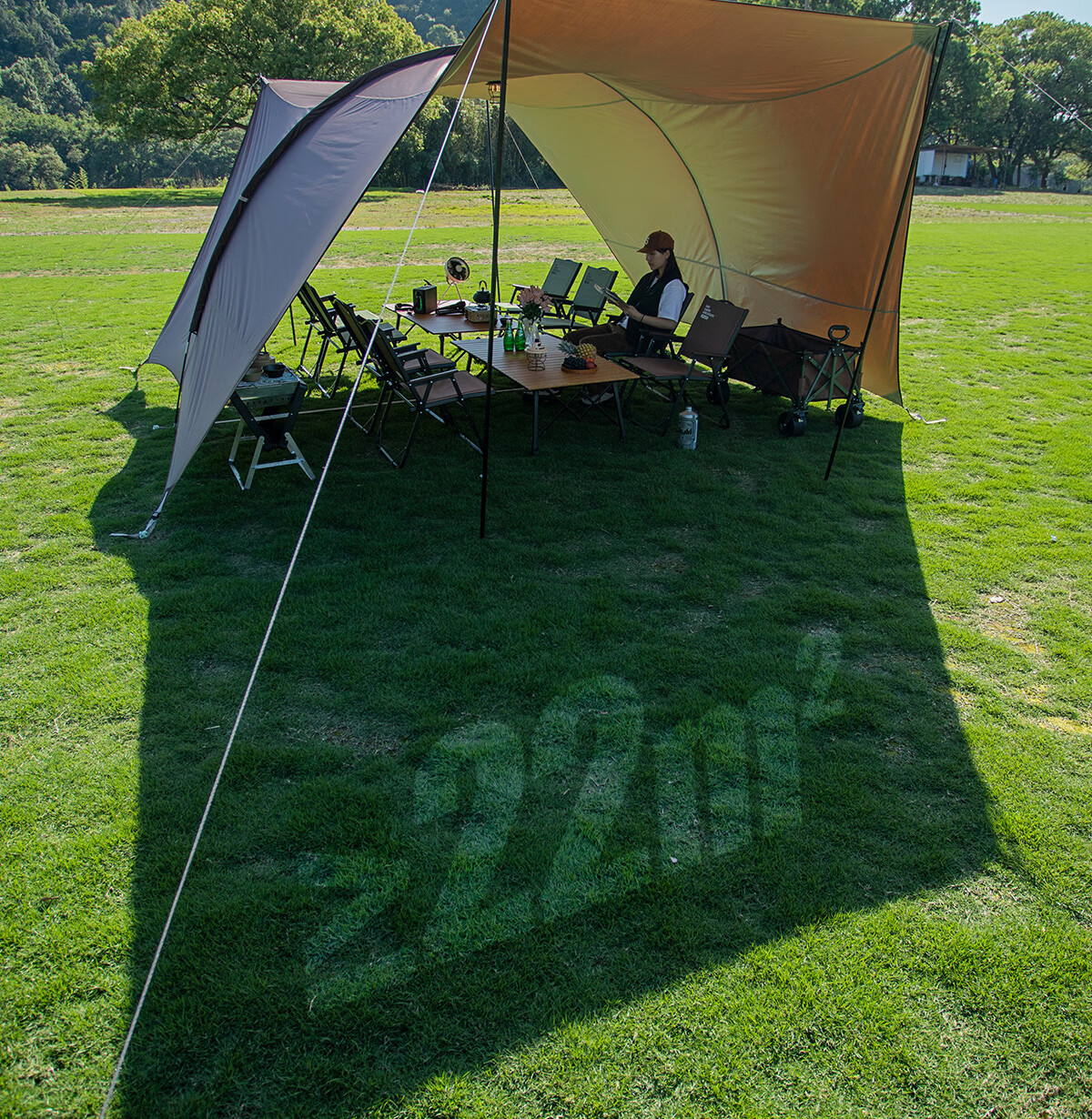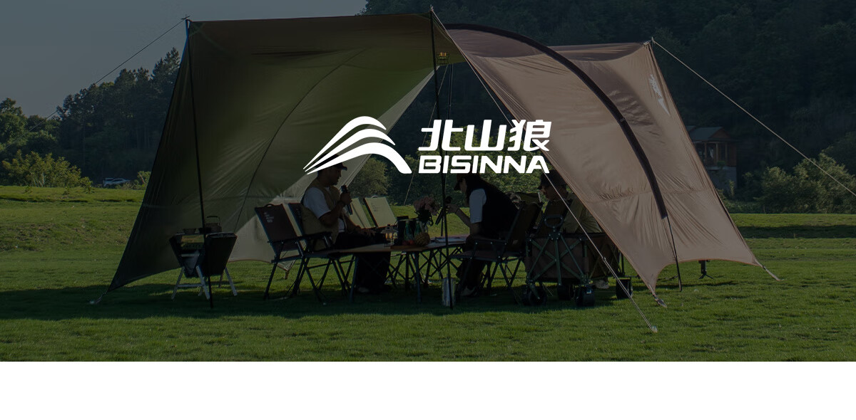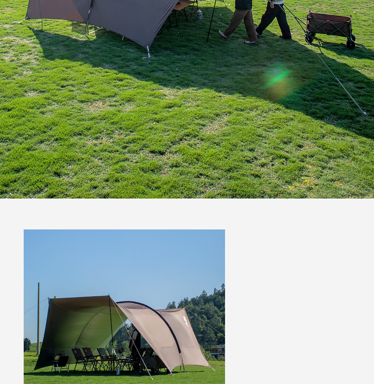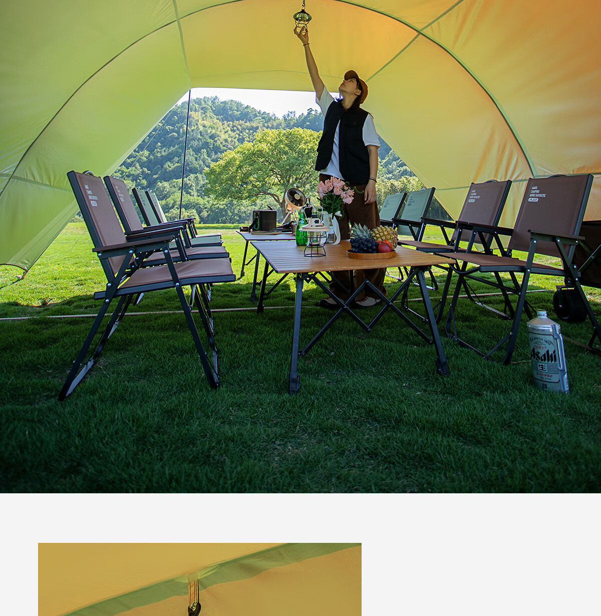 北山狼 户外露营防雨防晒大空间隧道式牛津布 双层银胶天幕帐篷 咖啡色