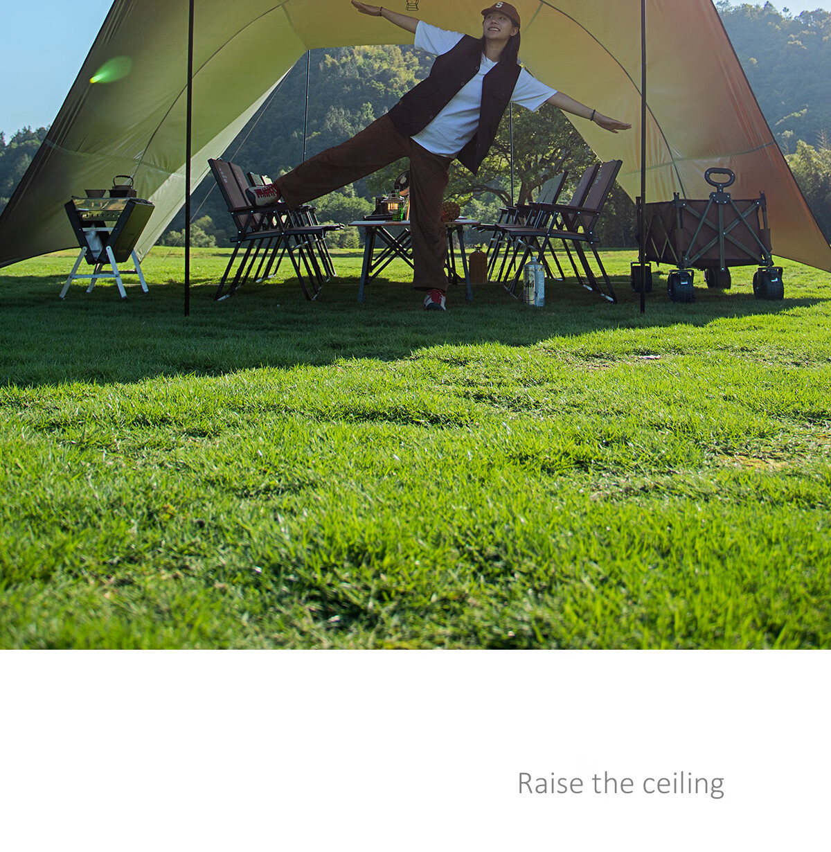 black dog黑狗户外黑胶穹顶天幕露营超大空间防雨野营过夜可拓展组合车尾帐 异想迷城-穹顶帐 展开尺寸:435*435*240cm