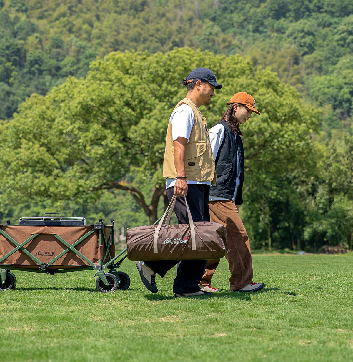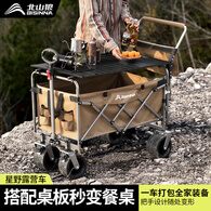 北山狼 户外露营车折叠推车大容量可坐人躺逛遛娃营地车超大号手推车 咖啡色 500L 坦克轮+黑色桌板
