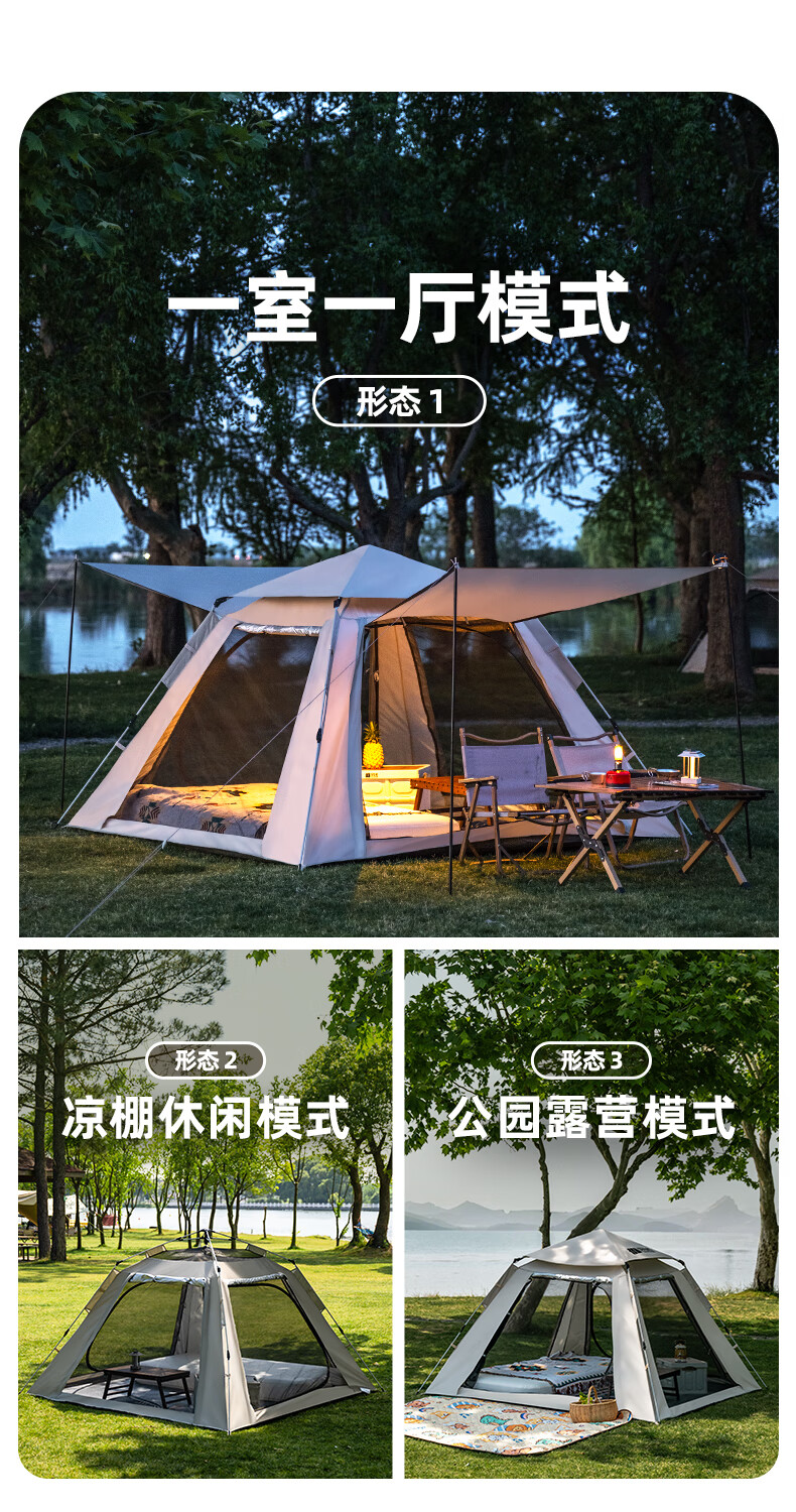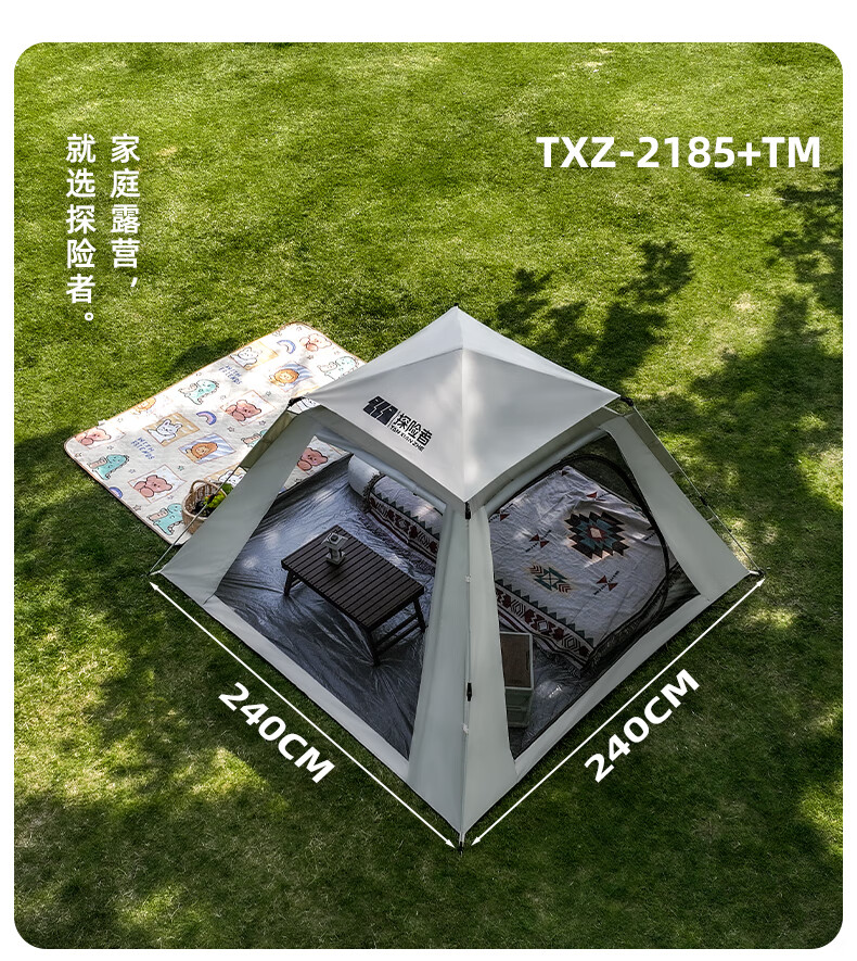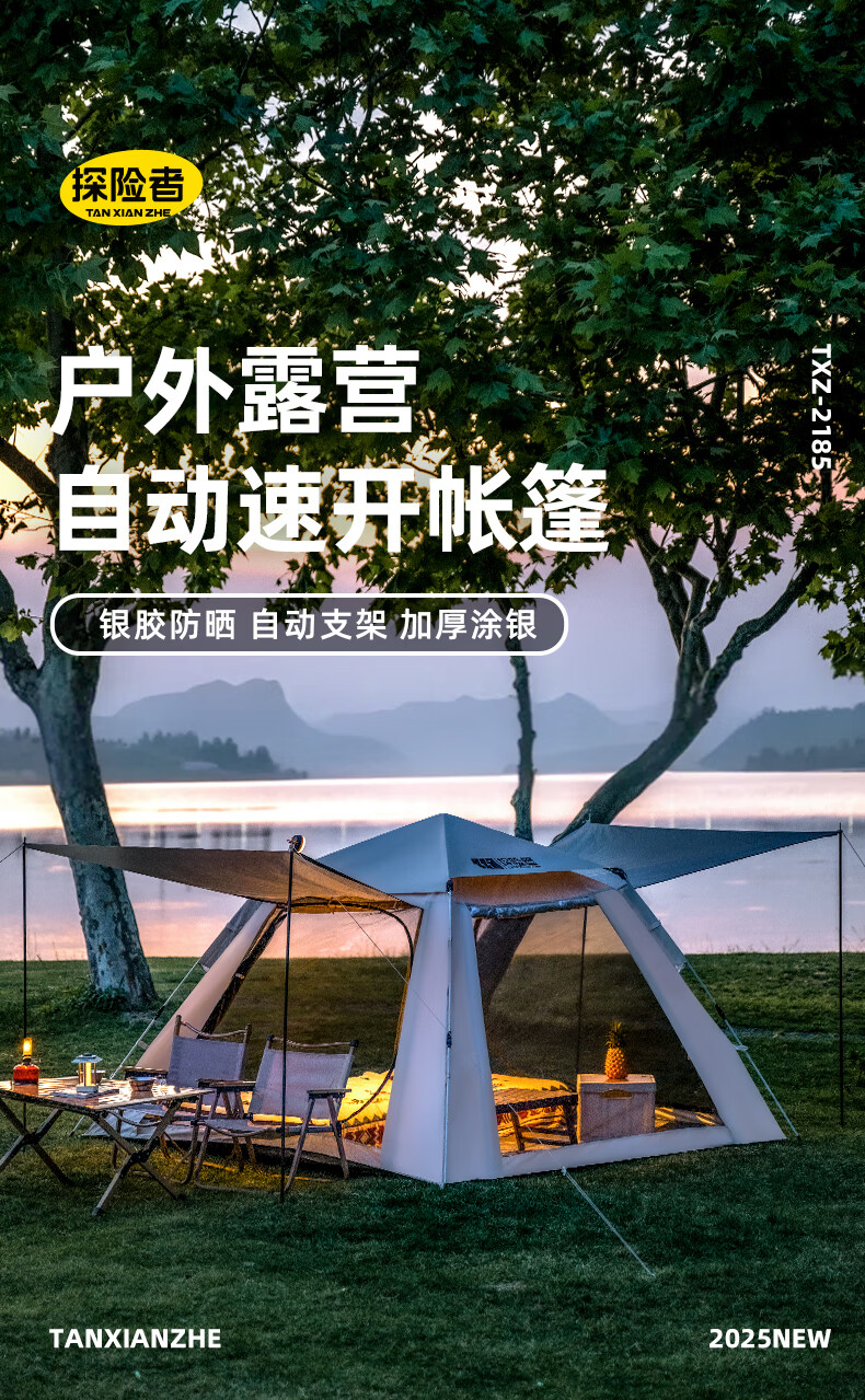 探险者全自动速开帐篷户外露营防雨过夜便捷天幕二合一防晒沙滩野营装备 3-5人加厚防晒【限时送防潮垫】