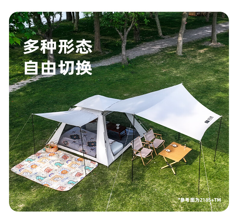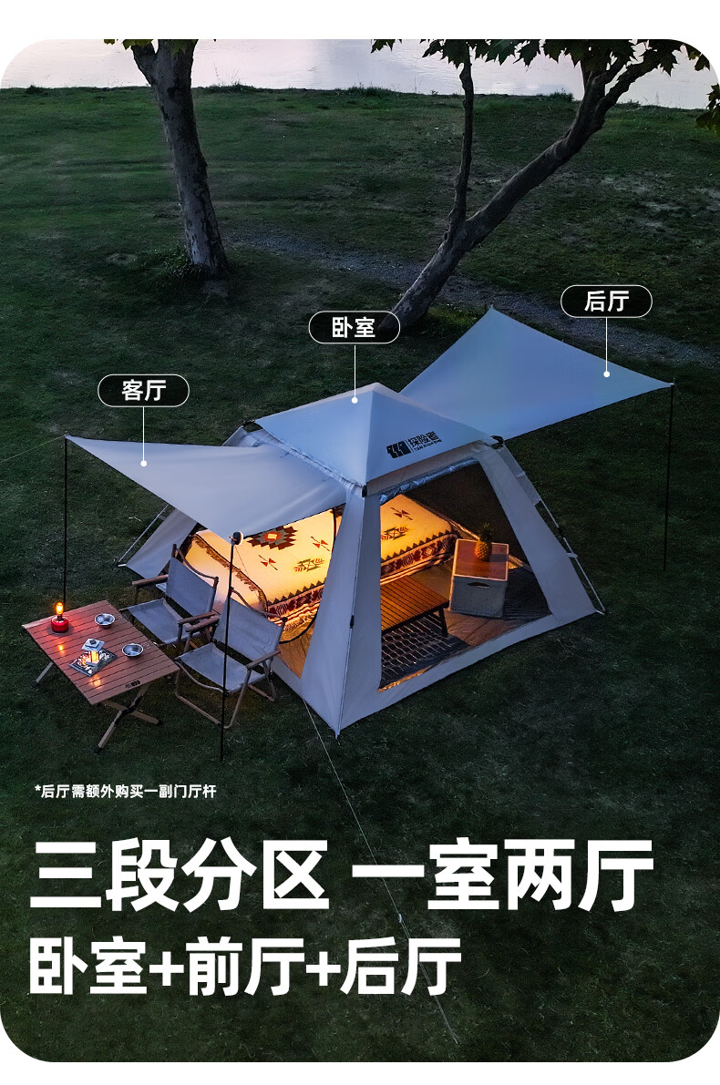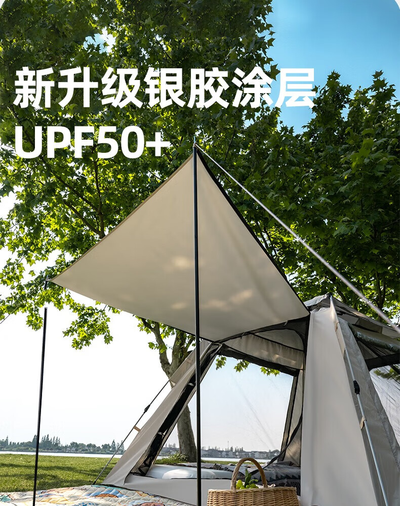 何佳功新燕尾天幕户外露营懒人免安装加厚黑胶防晒遮阳防雨速搭天幕 速搭型12㎡银胶天幕3.3*3.6米2-4人(1