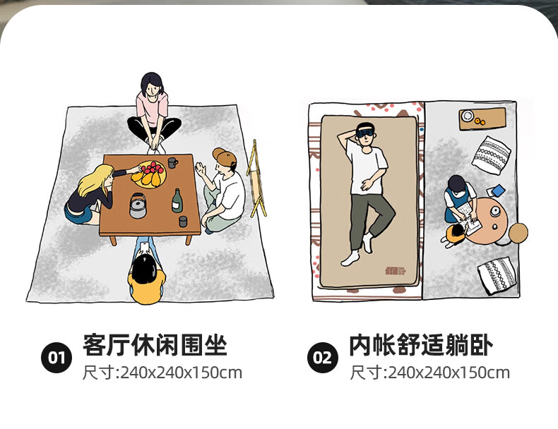 帐篷非常方便,一个人也可以打完成,在家打开里面空间蛮大,质量也不错,性价比很高,值得购买,另外就是服务太好,不买都忍不住