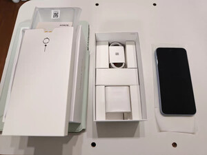 外包装采用塑封,彩盒内标配: ①手机(含内置电池)x1、②快速指南(含新机权益卡和电子三包凭证)x1、③HONOR SuperCharge充电器 x1、④USB Type-C 数据线x1、⑤取卡针 x1、⑥超薄透明软壳x1、⑦屏幕高透保护膜 (出厂已粘贴)x1。最终以实物为准。